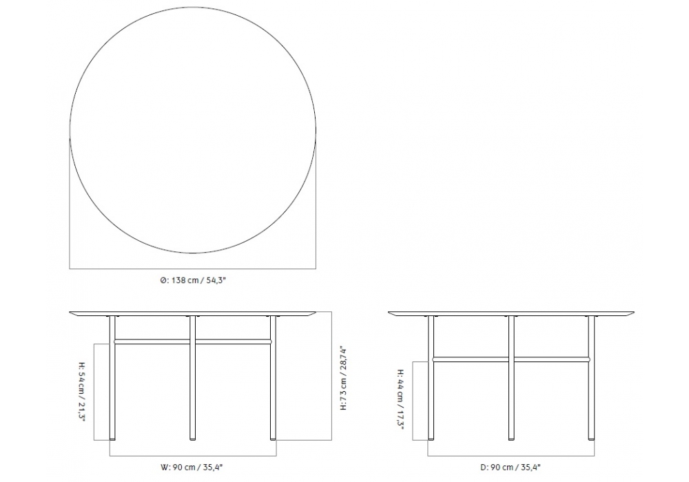 | Dimensions | • Ø 120 x H 73 cm; • Ø 138 x H 73 cm |