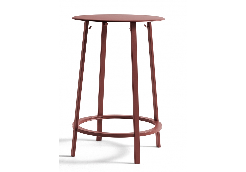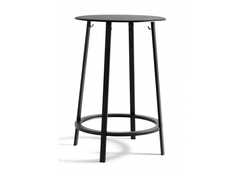 Revolver conçue par Leon Ransmeier pour Hay est une table bistrot en acier enduit de poudre et patins en feutre plastique réglables. Disponible en différentes finitions.