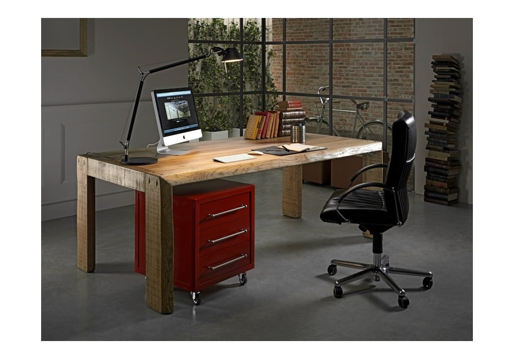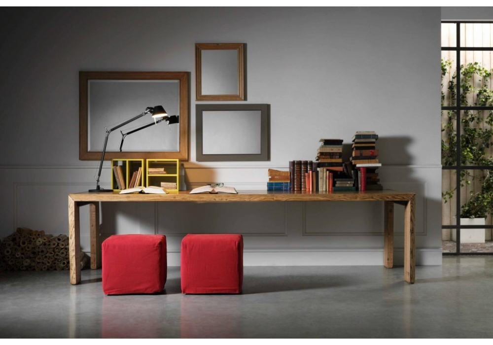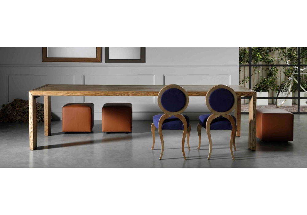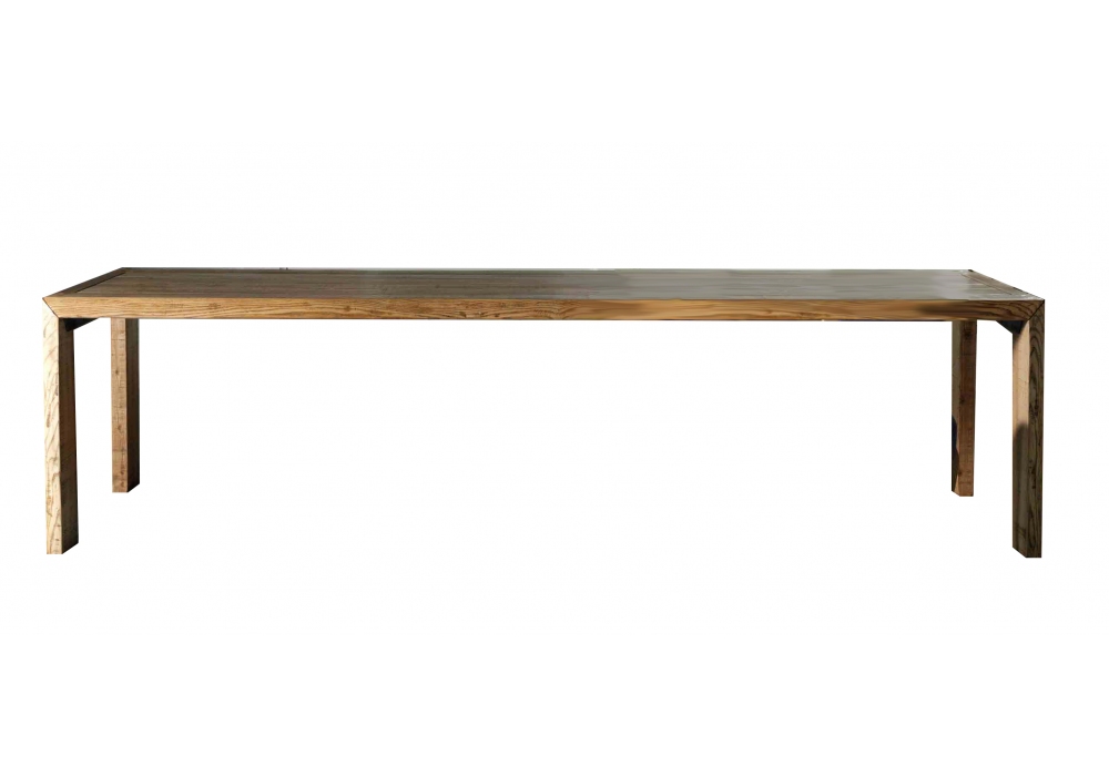One conçue par L'Ottocento est une table en frêne massif réalisée avec des planches de frêne de 6 cm d'épaisseur, la surface est lisse mais conserve les bords caractéristiques comme après la coupe en scierie. De plus, la planche utilisée pour les pieds et le grand côté du plateau est choisie de manière à ce que le bord visible soit celui d'origine du tronc. Disponible en différentes finitions.