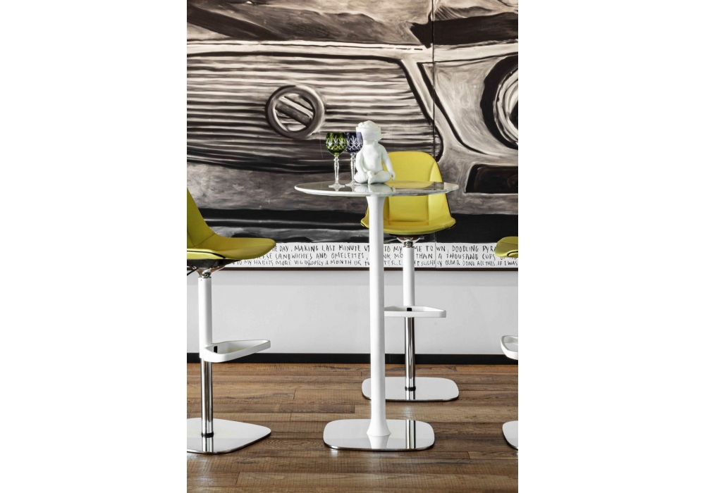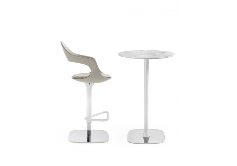 Rendez-Vous conçue par Stefano Bigi pour Enrico Pellizzoni est une table haute avec base en forme de colonne chromée ou peinte et peinte. Plateau en marbre de 20 mm d'épaisseur ou peint. Disponible en différentes finitions et tailles.