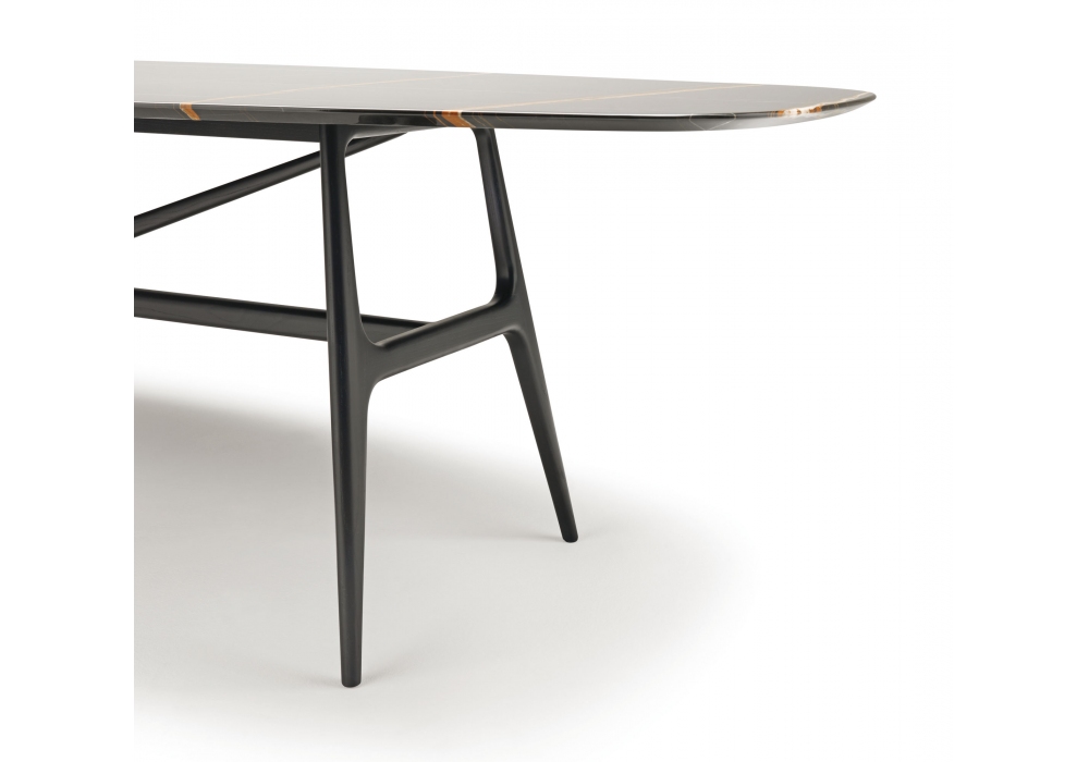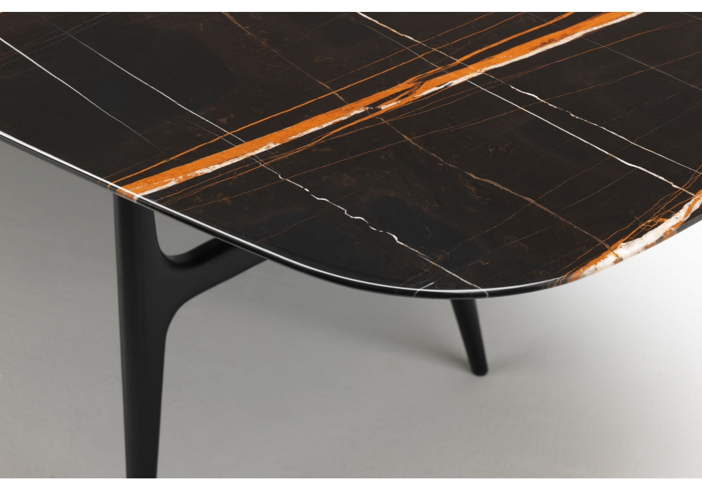 Gaudì conçue par Ferruccio Laviani pour MisuraEmme est une table réalisée avec base en chêne massif teinté et plateau en bois dans la même finition que la base ou en marbre. Disponible en différentes finitions et dimensions.