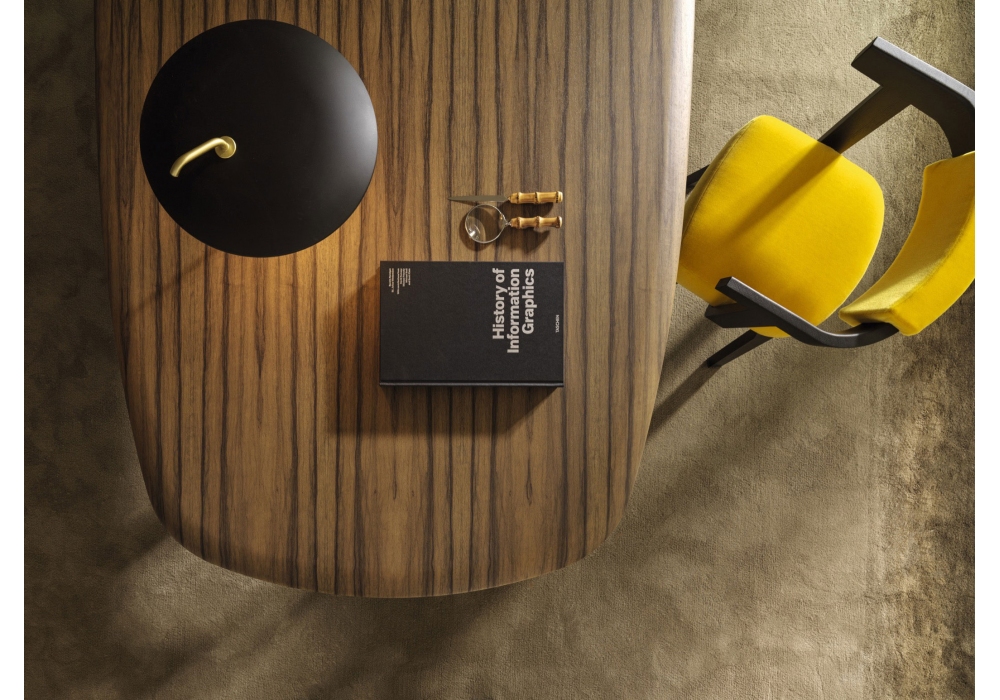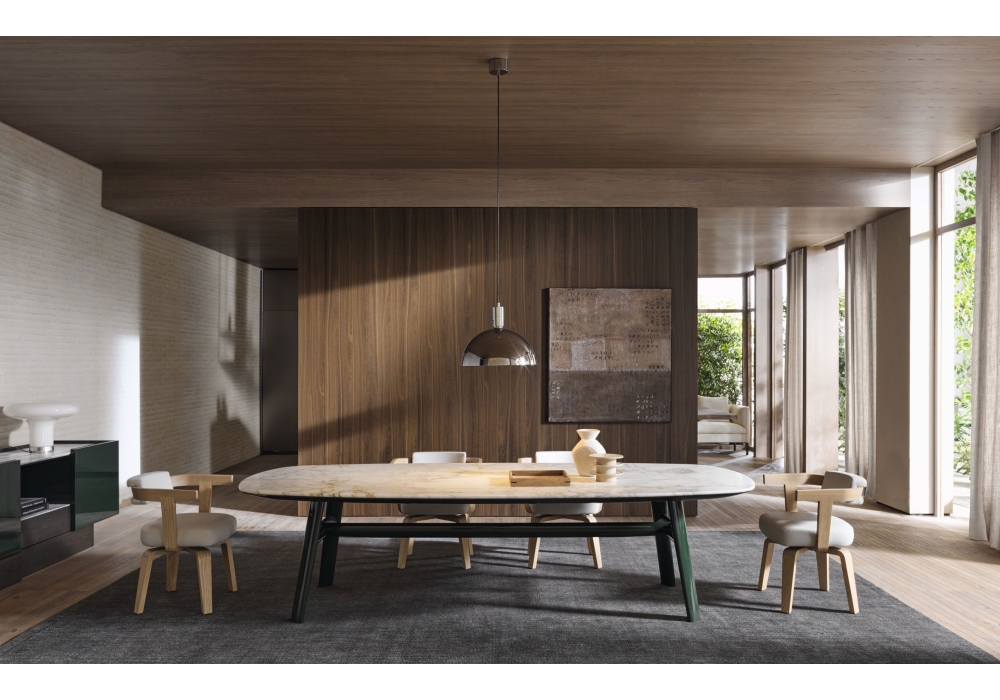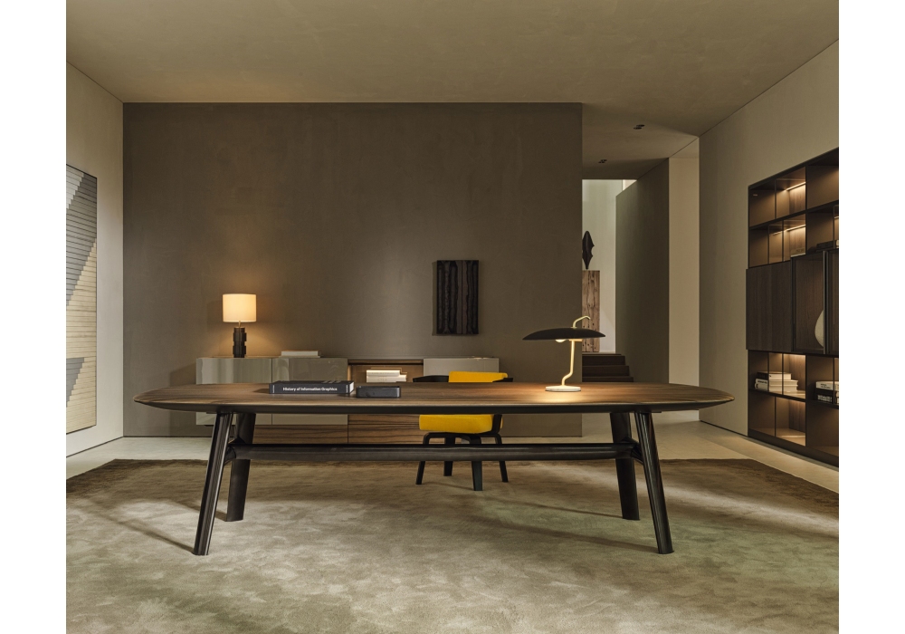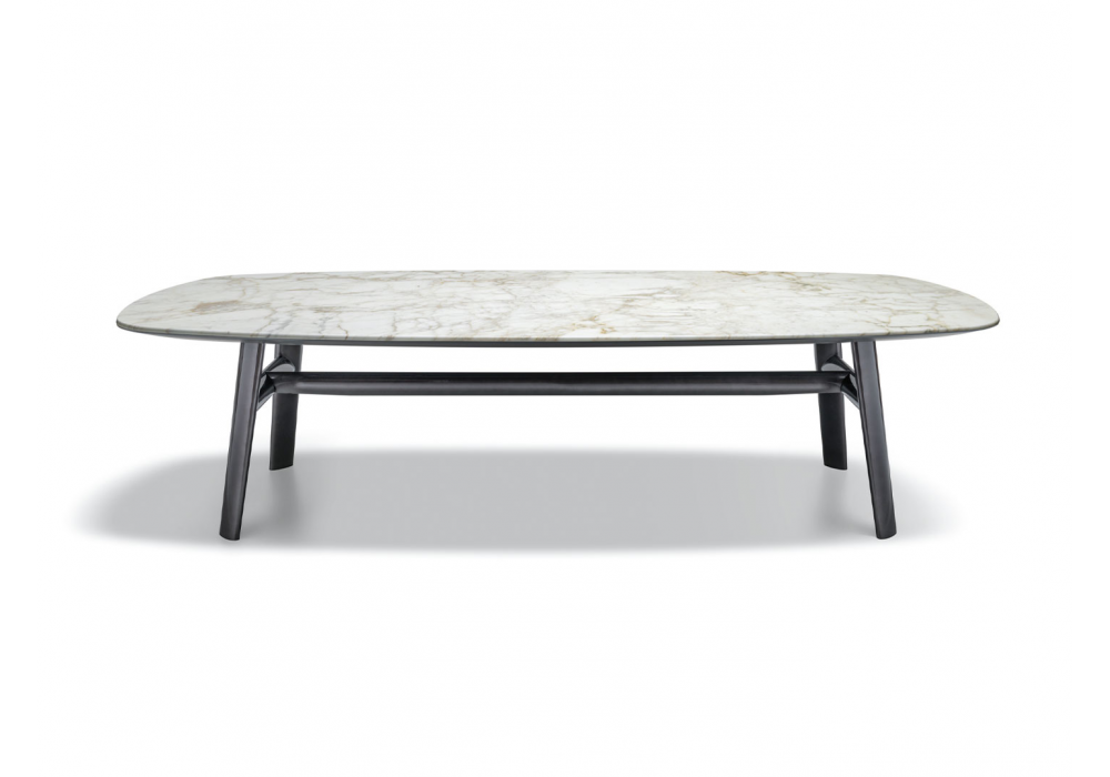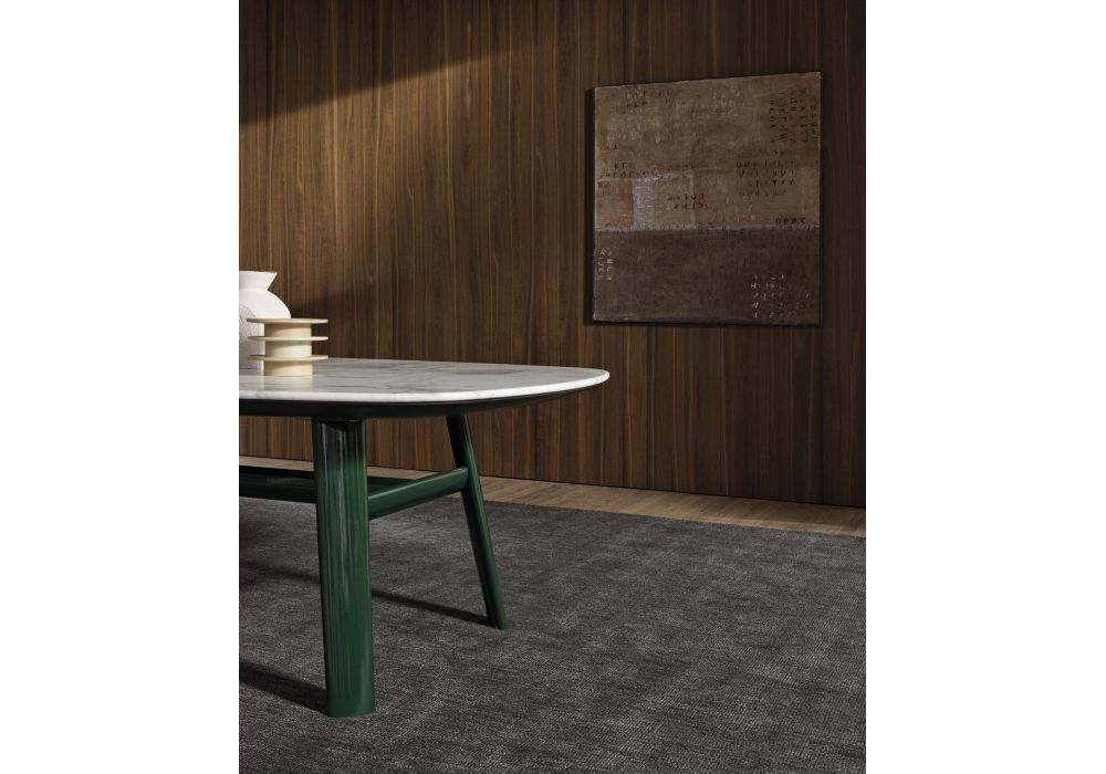 Old Ford conçue par Rodolfo Dordoni pour Molteni&C est une table avec pieds peints réalisés par hydroformage et traverse centrale par hydroformage et cône et structure de support en métal peint époxy. Plateau bois ou marbre. Disponible en différentes finitions et dimensions.