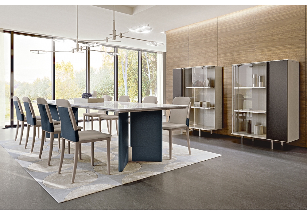 Zero conçue par Andrea Bonini pour Turri est une table avec structure en MDF et pieds recouverts de différents cuirs. Le plateau est en marbre ou en bois laqué brillant. Disponible en différentes dimensions.