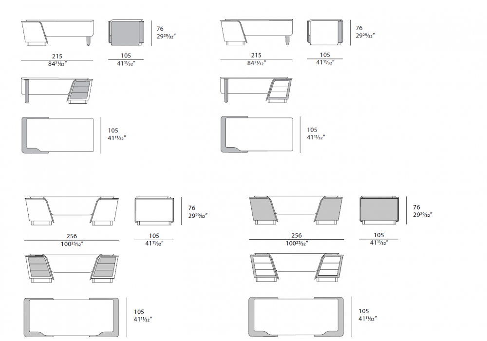 | Dimensions | 256 x 105 x H 76 cm; 215 x 105 x H 76 cm. |