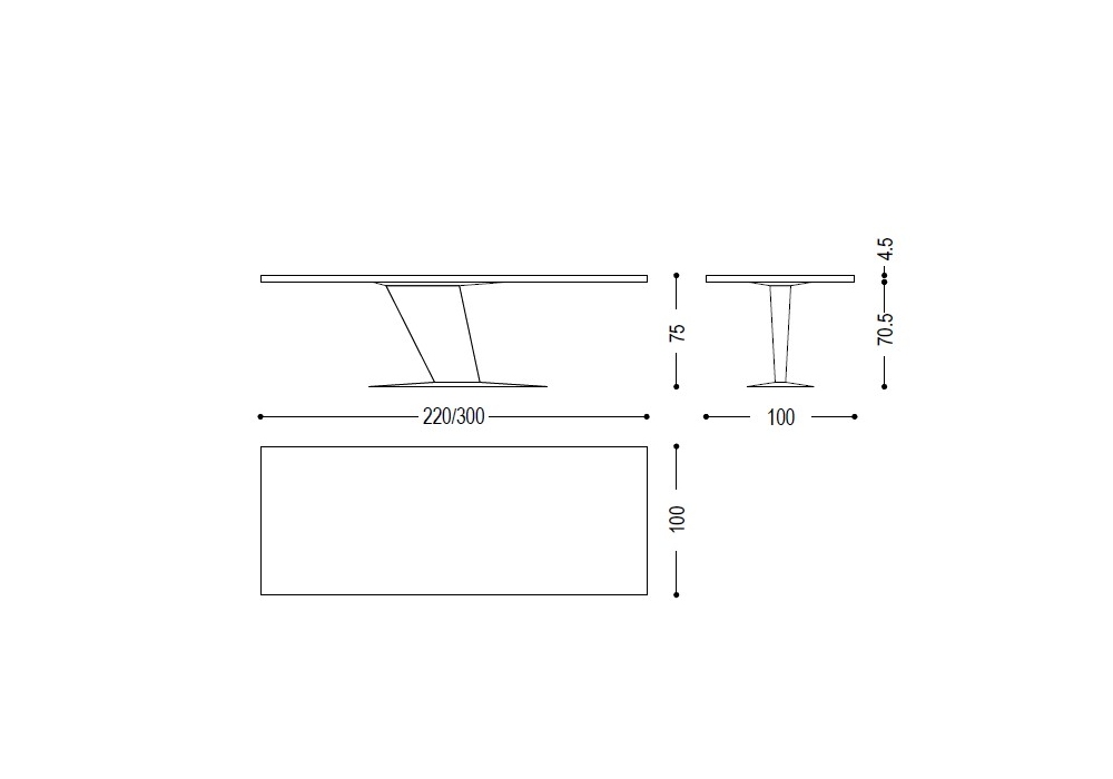 | Dimensions | - 220 x 100 x H 75 cm; - 240 x 100 x H 75 cm; - 260 x 100 x H 75 cm; - 280 x 100 x H 75 cm; - 300 x 100 x H 75 cm. |