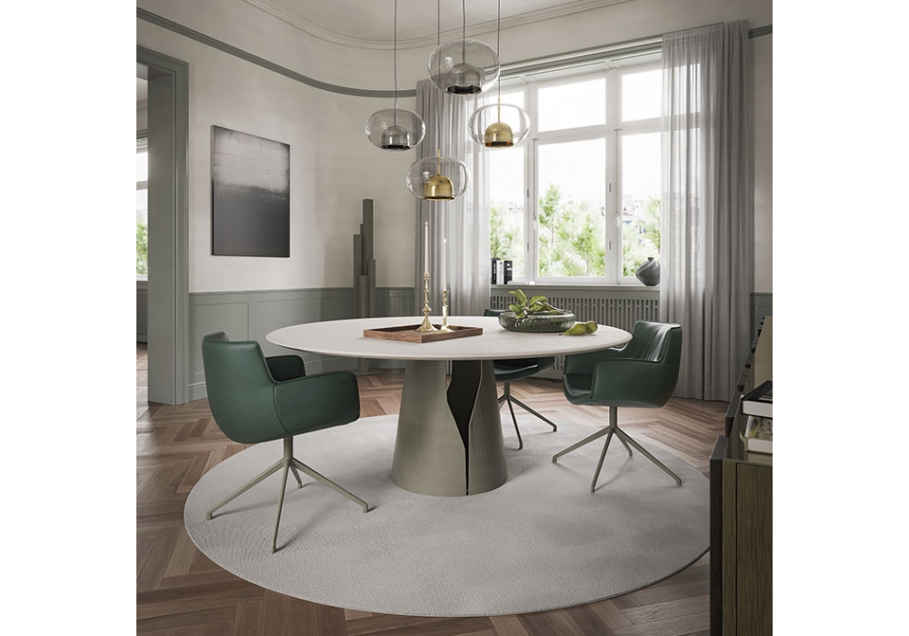 Giano Argile conçue par Manzoni & Tapinassi pour Cattelan Italia est une table avec base en acier peint, plateau en MDF spatulé argile. Disponible en différentes finitions.