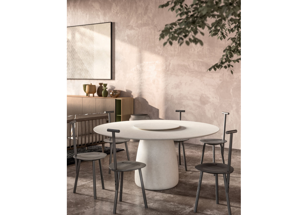 Bold conçue par Stefano Bassan pour Capodopera est une table avec plateau en MDF laqué mat, avec des panneaux en bois plaqué ou en béton en deux finitions. Le socle est en béton haute performance. Il est possible d'ajouter le plateau tournant Lazy Susan dans différentes finitions.