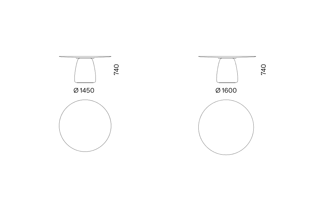 | Dimensions | Ø 145 x H 74 cm, Ø 160 x H 74 cm. |