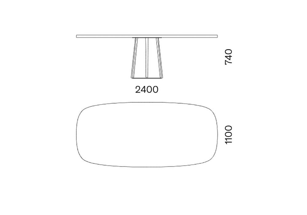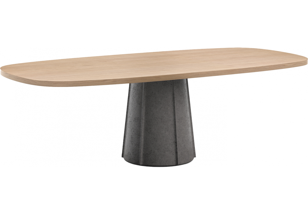 Deville conçue par Alessio Bassan pour Capodopera est une table avec plateau en MDF laqué mat ou chêne massif et base en béton à haute performance.