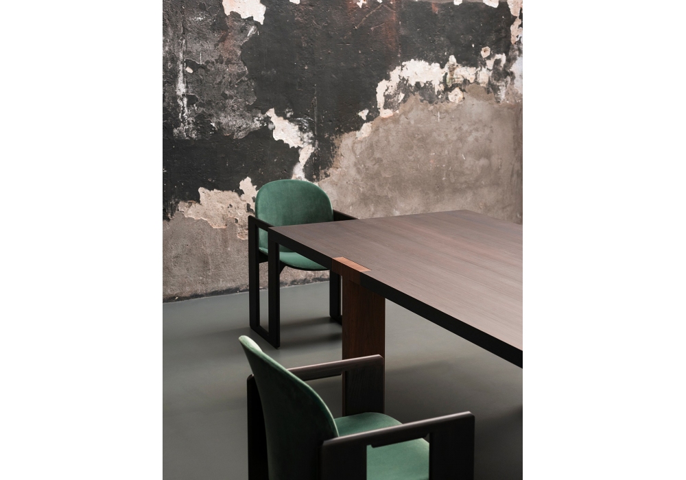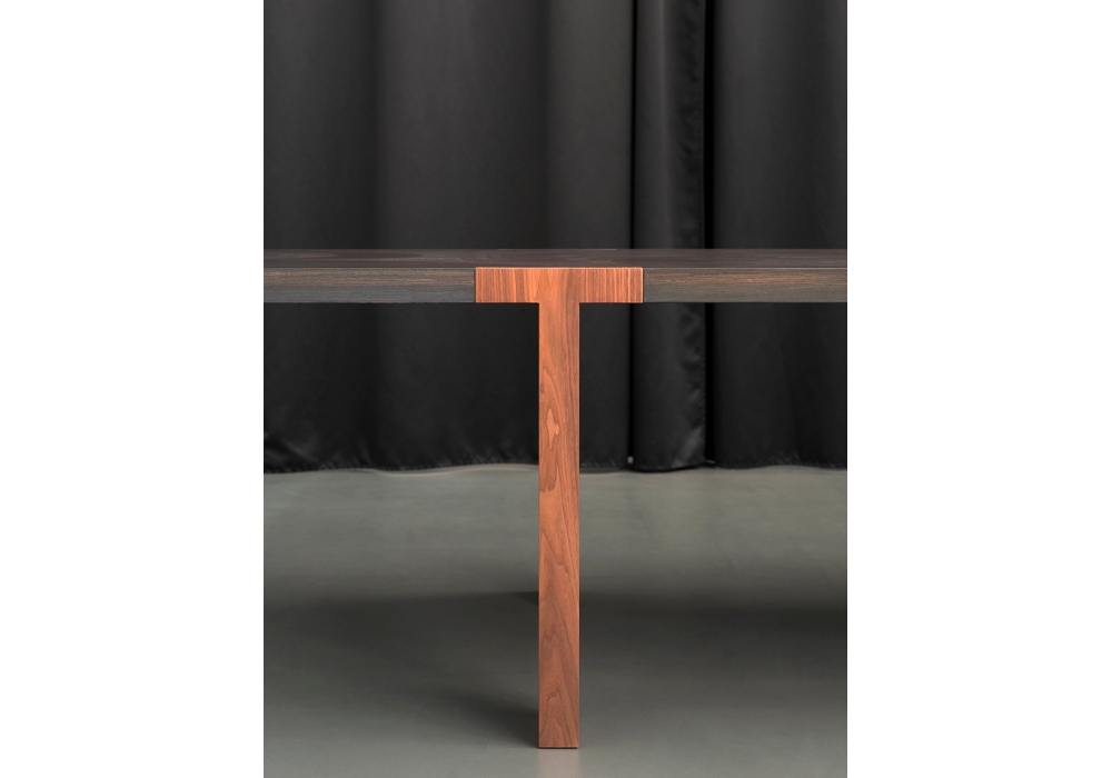 T-Table conçue par Tobia Scarpa pour Tacchini est une table avec plateau en chêne, disponible en 2 finitions. La base est en noyer. Fabriqué en 2 tailles.