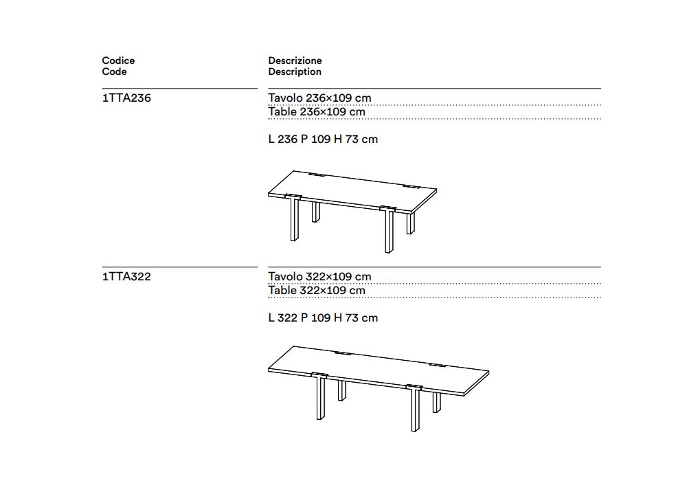 | Dimensions | L 236 x P 109 x H 73 cm; L 322 x P 109 x H 73 cm. |