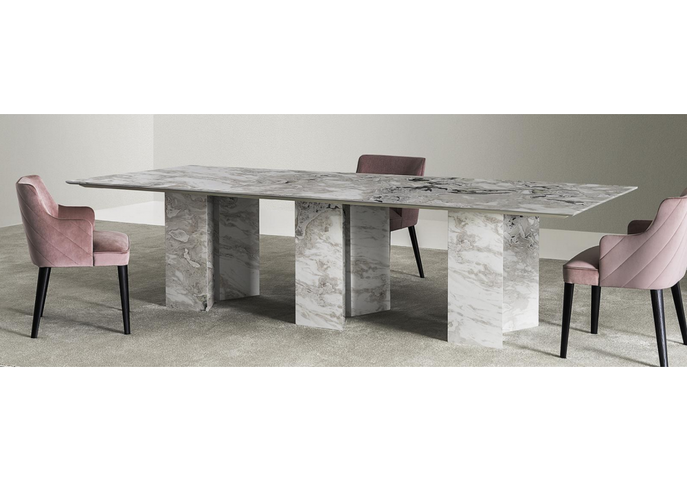 Karl conçue par CSM pour Casamilano est une table en marbre avec dessous en MDF laqué.