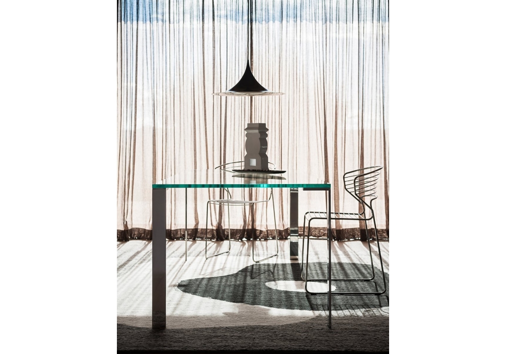 Liko Glass 404 conçue par Arik Levy pour Desalto est une table avec pieds en acier et plateau en verre. Disponible en différentes finitions et tailles.