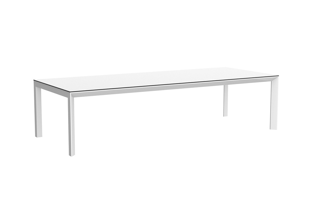 Frame conçu par Ramón Esteve pour Vondom est une table réalisée avec des pieds en aluminium thermolaqué. Son plateau est en HPL avec chant noir ou en Solid Core. Disponible en différentes finitions et dimensions. Convient pour une utilisation en extérieur comme en intérieur.