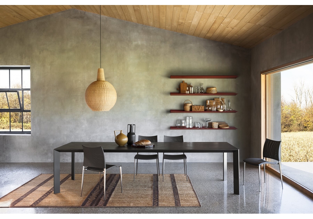 Mac conçue par Cerri & Associati pour Desalto est une table avec structure en aluminium extrudé et joints structurels moulés sous pression. Plateau en céramique ou en cristal. Disponible en différentes finitions et tailles.