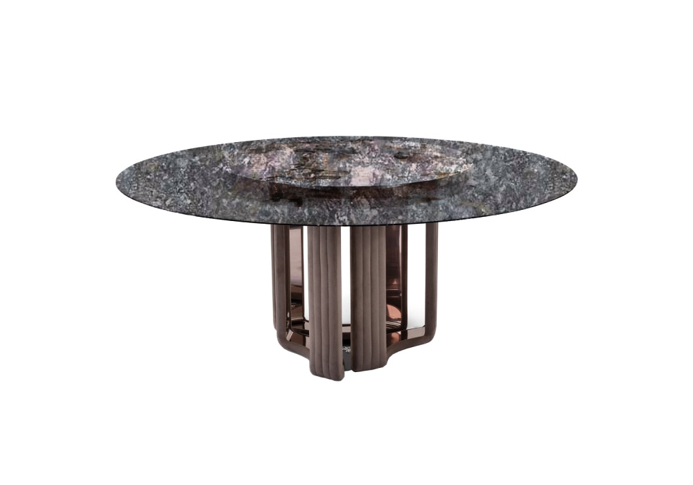 Kylo conçue par Alessandro La Spada pour Visionnaire est une table avec un plateau circulaire en verre trempé avec une pièce maîtresse en marbre en option. La base est en métal recouverte de cuir ou de tissu. Kylo est disponible en différentes finitions et modèles.