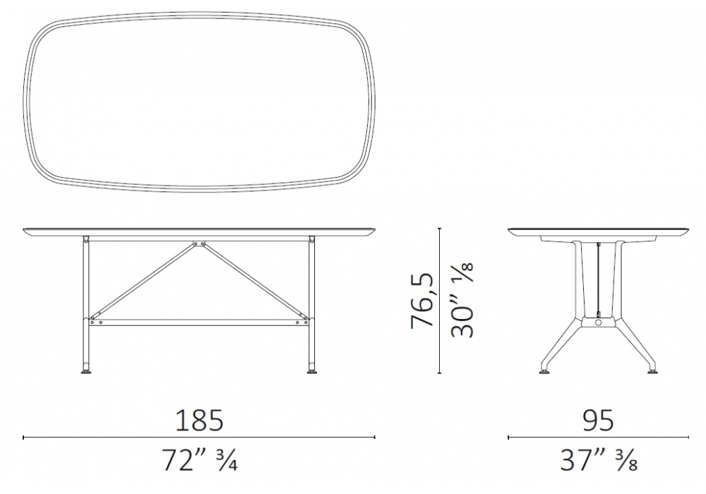 | Dimensions | • 185 x 95 x H 76,5 cm |