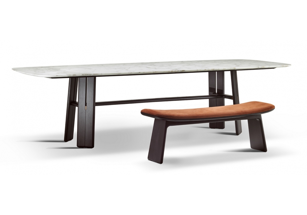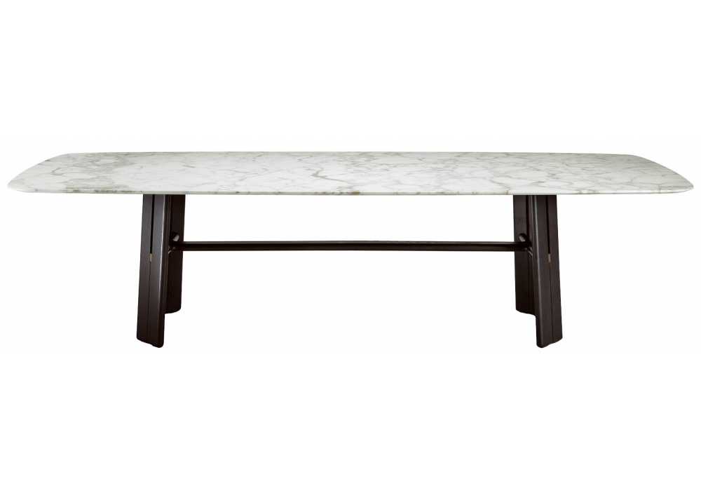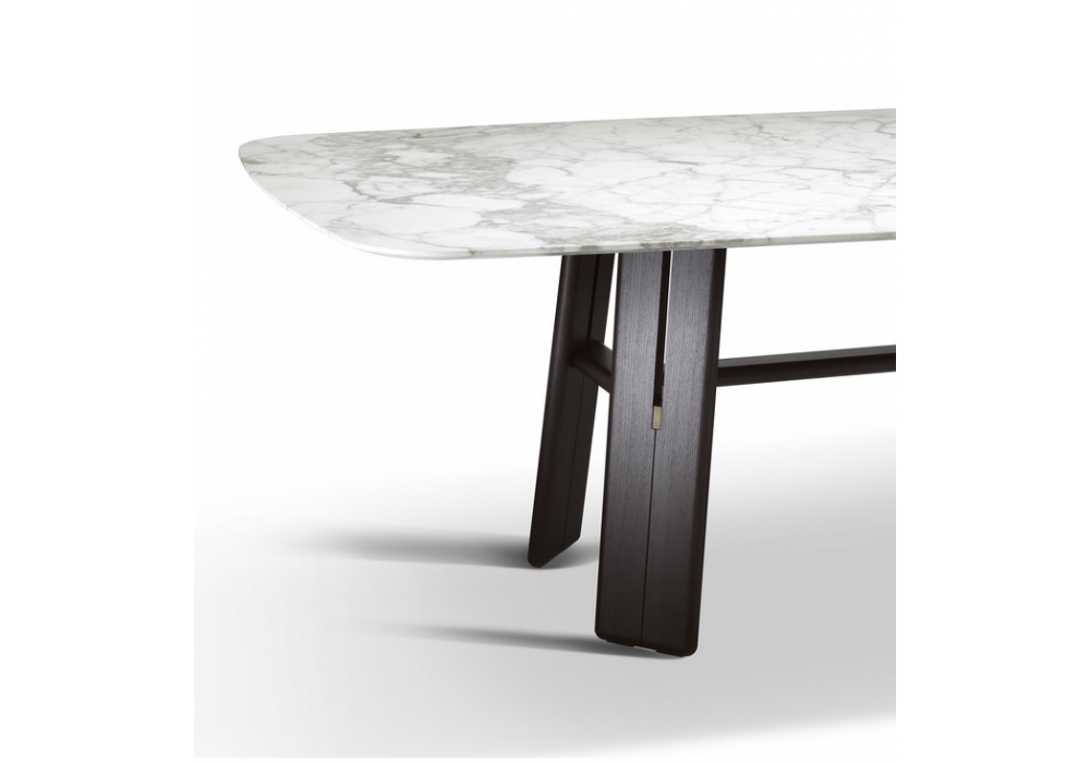 Duo conçue par Roberto Lazzeroni pour Ceccotti Collezioni est une table ronde avec base en bois de frêne massif et plateau en marbre Calacatta semi-poli. Inserts en laiton bronzé brossé. Disponible en différentes finitions et tailles.