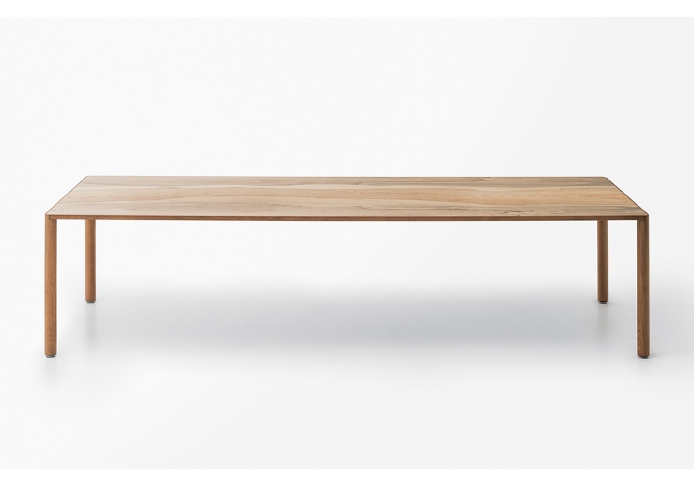 Elon conçue par Francesco Rota pour Paola Lenti est une table avec un plateau en nid d'abeille en aluminium recouvert de frêne, fini avec un cycle de peinture acrylique transparente. Chant en chêne massif teinté. Pieds en acier peint graphite mat, pieds réglables en acier et caoutchouc. Disponible en deux tailles.