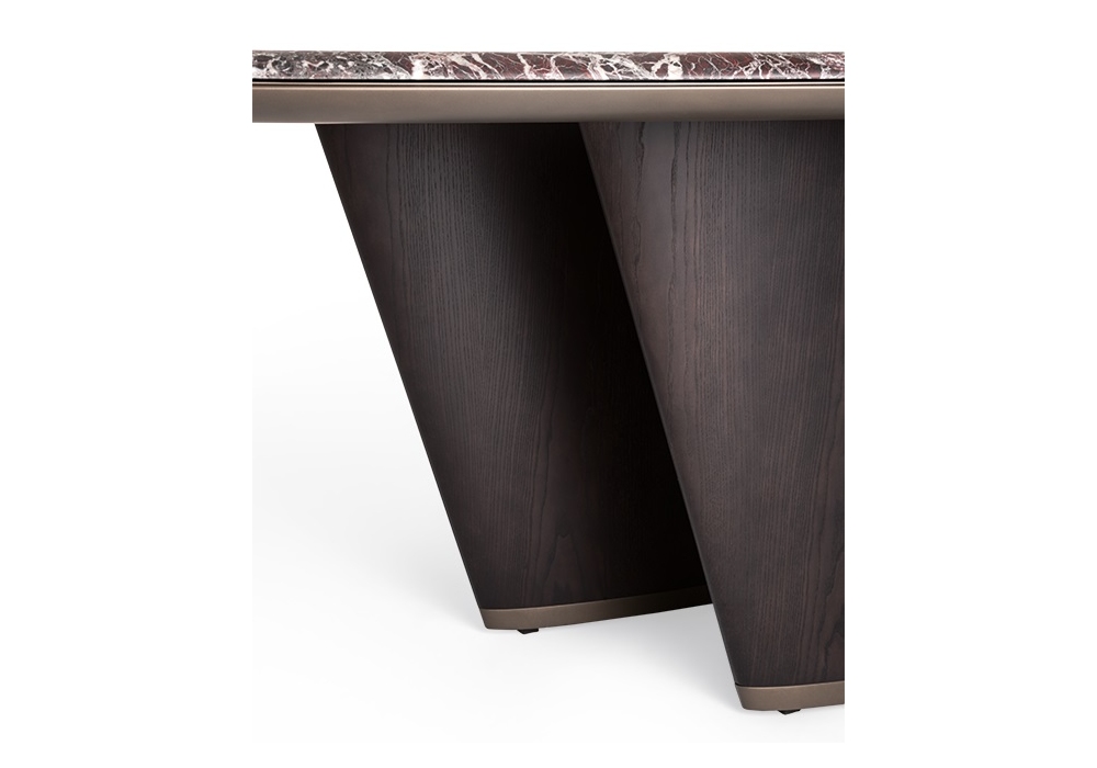 Mistral Marble conçue par Dainelli Studio pour Giorgetti est une table rectangulaire avec plateau en marbre et structure en frêne. Disponible en différentes finitions, tailles et versions.