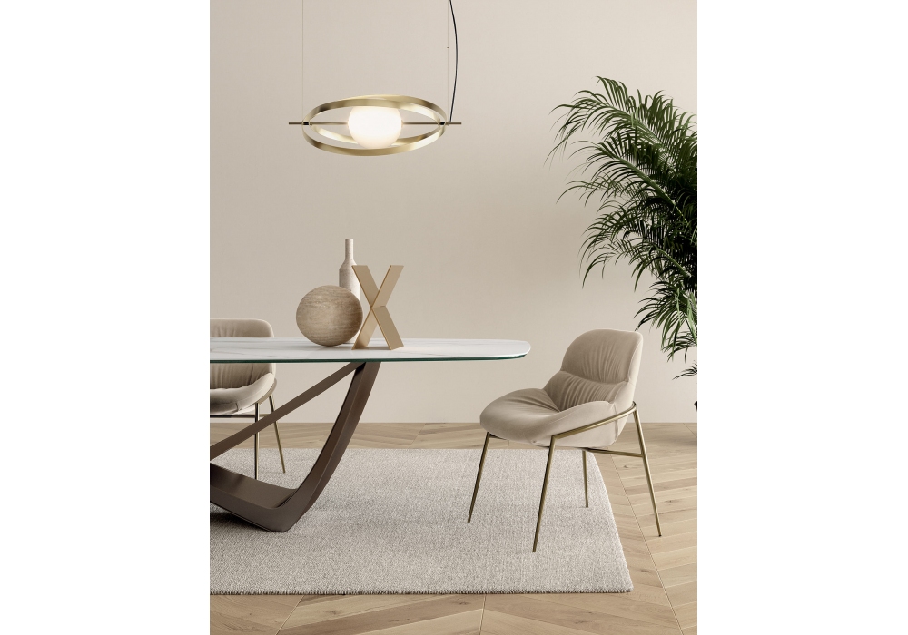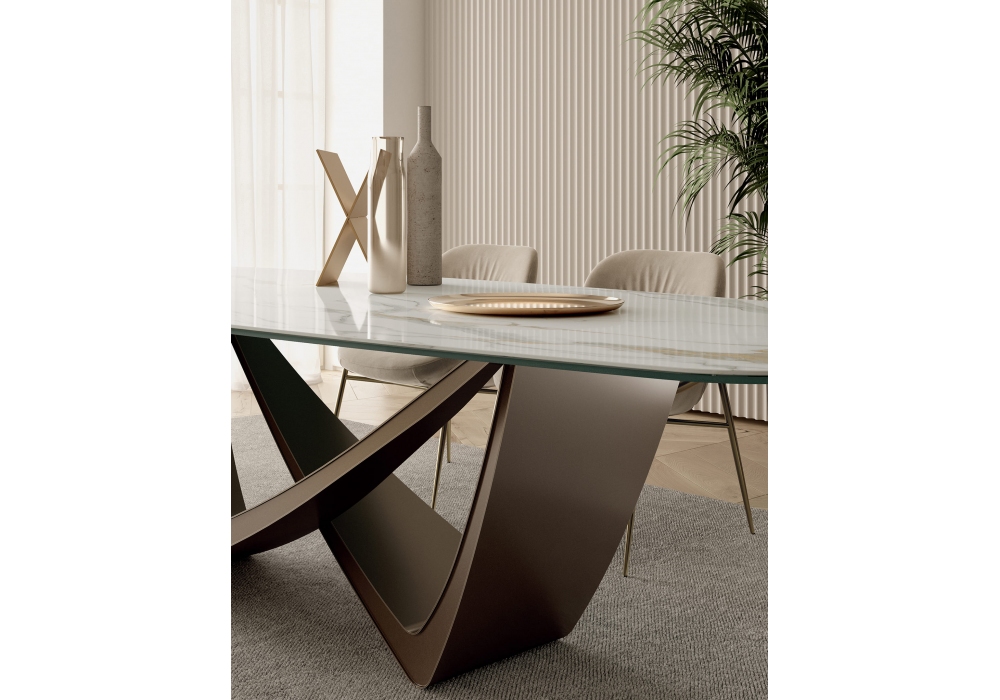 53.75 Bach conçue par Andrea Lucatello pour Bontempi est une table fixe avec structure en acier laqué et plateau en SuperCeramic ou SuperMarble. Disponible en différentes finitions.