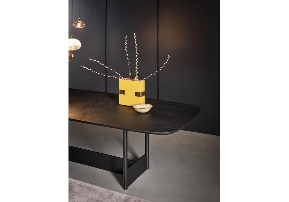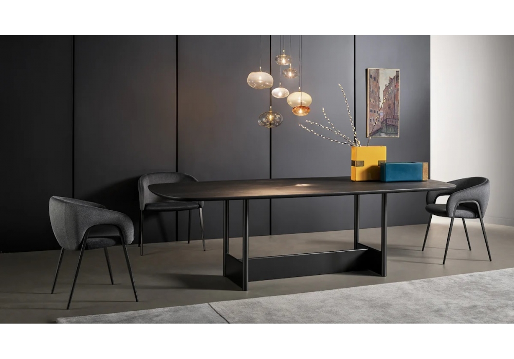 Canvas conçue par Alain Gilles pour Bonaldo est une table avec base en métal et plateau en bois, céramique ou marbre. Disponible en différentes finitions et tailles.