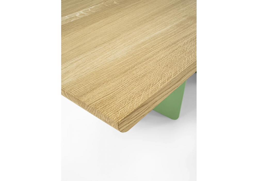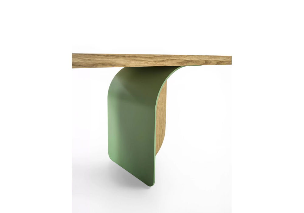 Forma conçue par Carlesi Tonelli pour Riva 1920 est une table avec un plateau en bois massif avec des listes collées et des bords biseautés, qui se caractérise par les pieds, nés de la rencontre entre le fer et le bois et créés pour paraître différents selon l'angle sous lequel on regarde-les. Disponible en différentes finitions et dimensions.