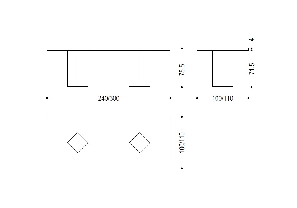 | Dimensions | 240 x 100 x H 75.5 cm; 240 x 110 x H 75.5 cm; 260 x 100 x H 75.5 cm; 260 x 110 x H 75.5 cm; 280 x 100 x H 75.5 cm; 280 x 110 x H 75.5 cm; 300 x 100 x H 75.5 cm; 300 x 110 x H 75.5 cm. |