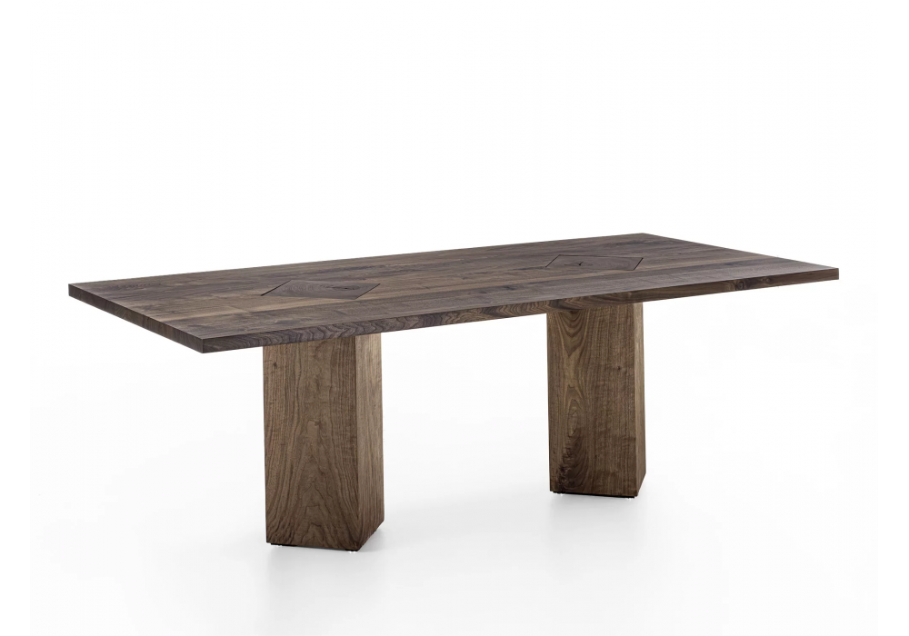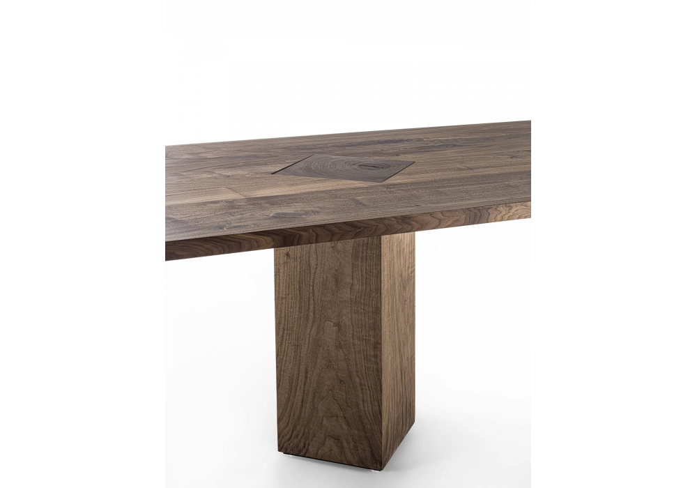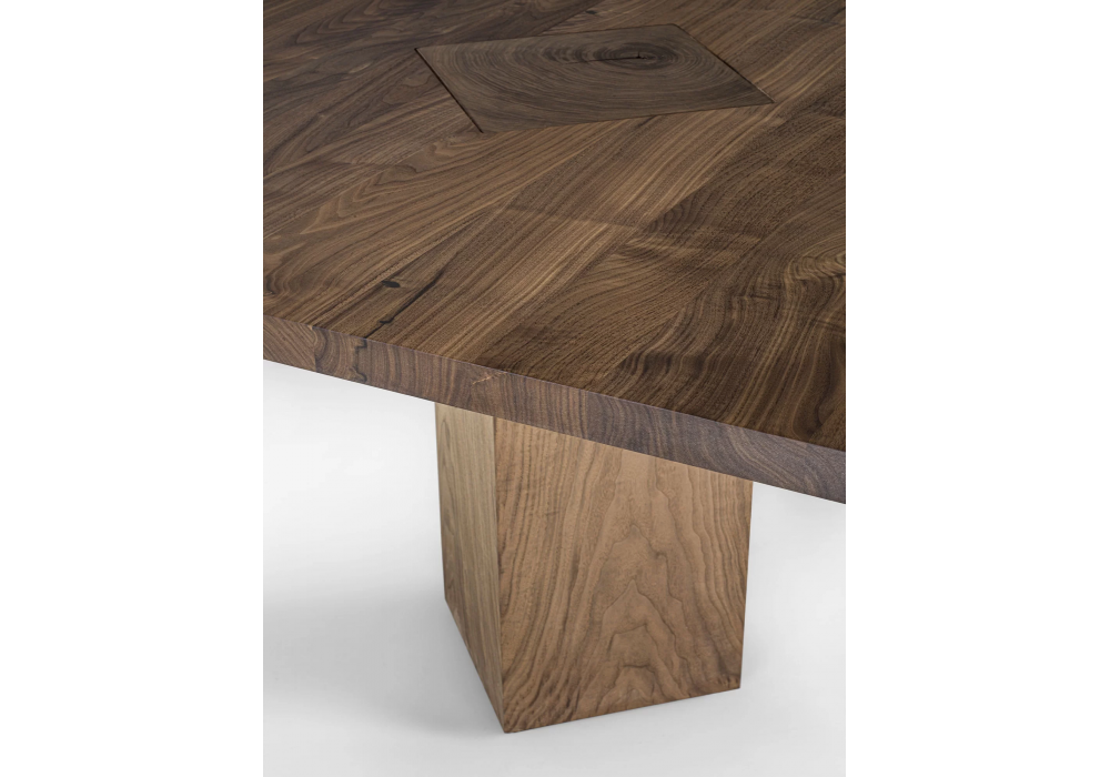 Junior B conçue par Authentic Design pour Riva 1920 est une table avec un plateau en bois massif à lattes collées, caractérisé par des pieds passants visibles sur le plateau, obtenus à partir de sections de troncs d'arbres et tournés à un angle de 45°. Disponible en différentes finitions et dimensions.
