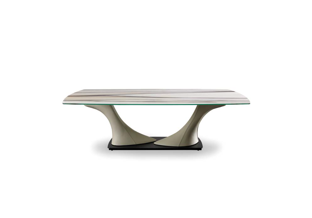 Archimede 72 conçue par Riccardo Lucatello pour Reflex Angelo est une table réalisée avec structure et plateau en métal, pieds recouverts de cuir et plateau en Marmoreflex/Legnoreflex. Disponible en différentes finitions et dimensions.
