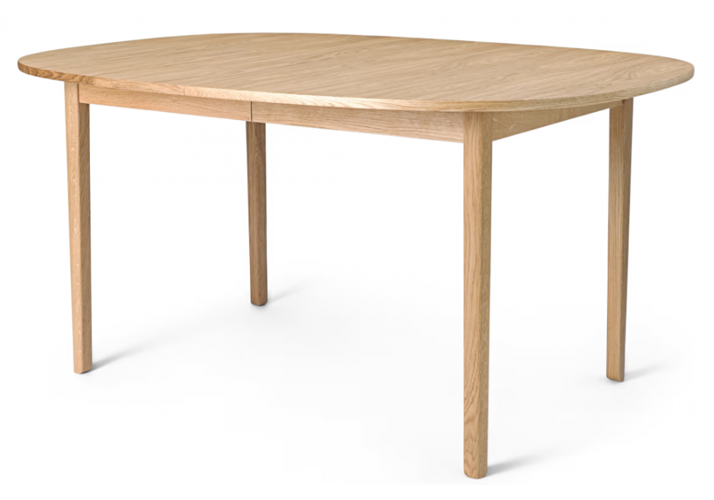 OW224 conçue par Ole Wanscher pour Carl Hansen & Søn est une table en chêne plaqué huilé. Base en bois massif. La table est conçue pour 2 rallonges (dont 1 pied de support en bois noir). Rallonges en MDF gris ou noir ou en chêne plaqué huilé.