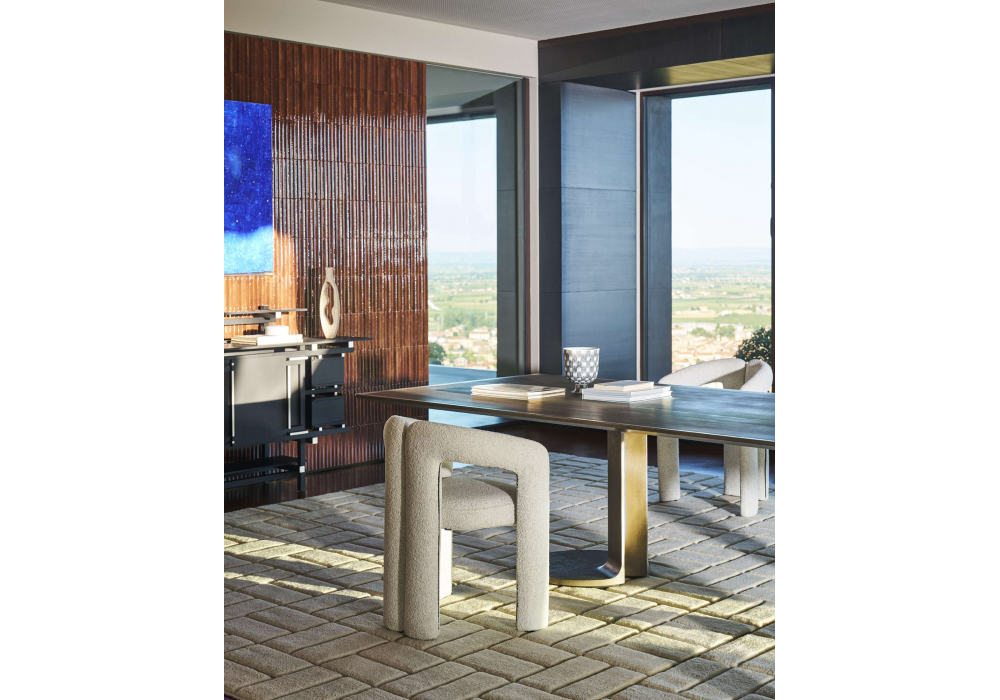 TL59 conçue par Afra & Tobia Scarpa pour Cassina est une table rectangulaire réalisée avec une double base et un plateau avec application en métal.