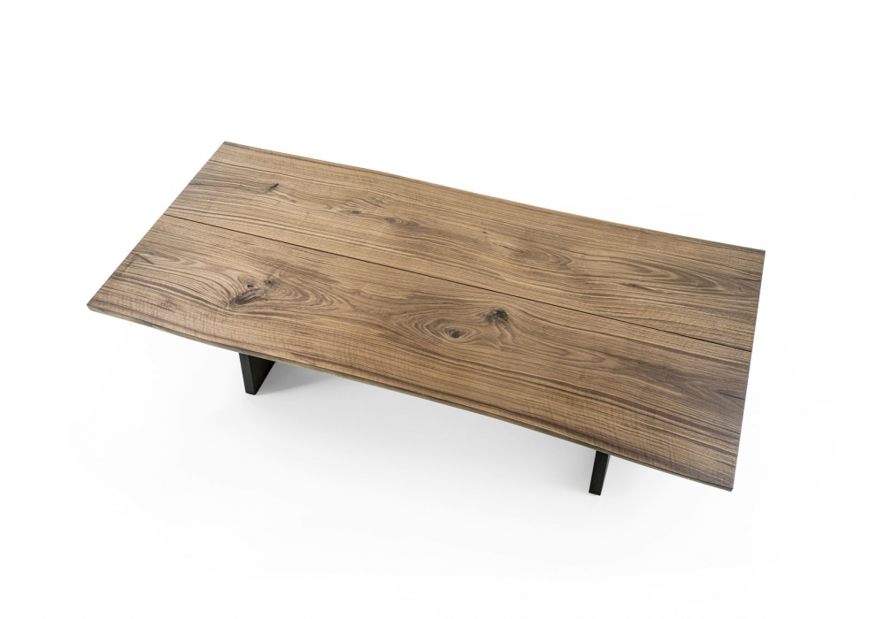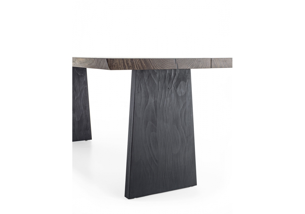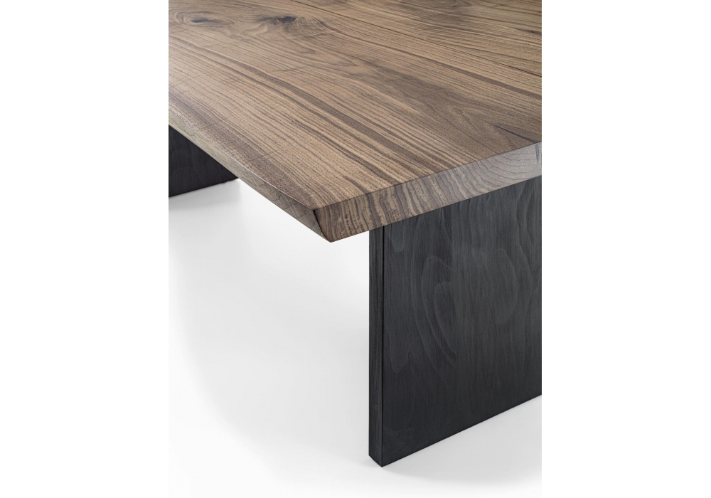 Rewood Pyramid Plank conçue par Authentic Design pour Riva 1920 est une table réalisée avec un plateau en bois massif, composé de deux planches simples alignées avec un espace central et des bords naturels. Le piètement est constitué de pieds en bois massif de forme trapézoïdale évoquant une pyramide. Disponible en différentes finitions et dimensions.