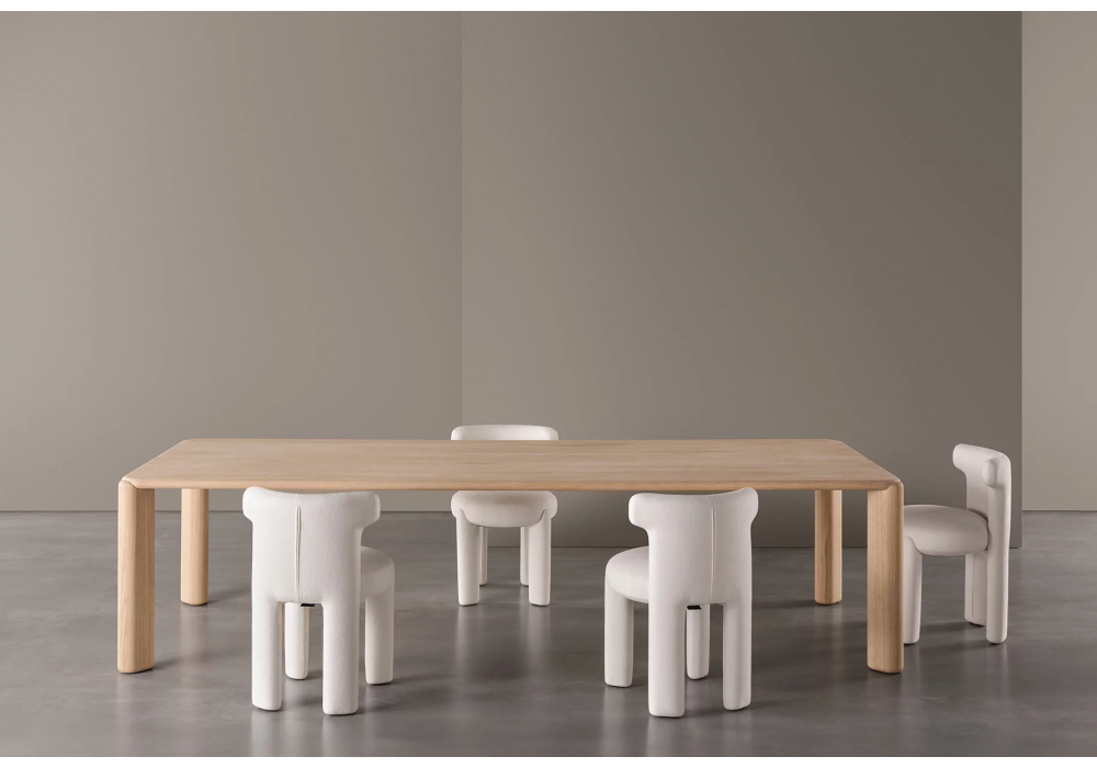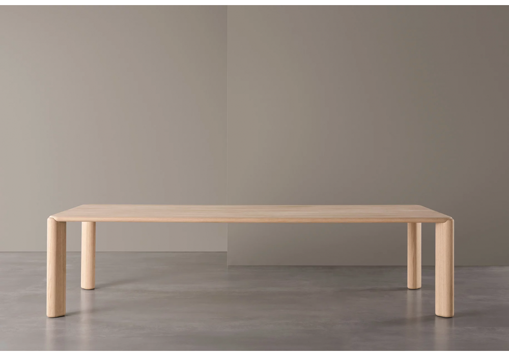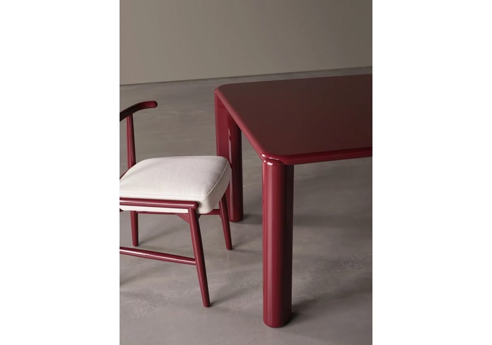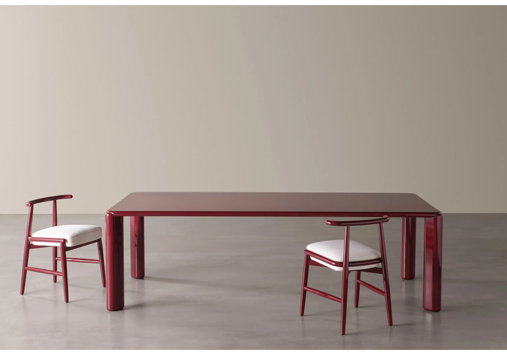 Frank conçue par Andrea Parisio pour Meridiani est une table réalisée en placage de chêne flammé ou laqué avec une finition mate ou brillante.