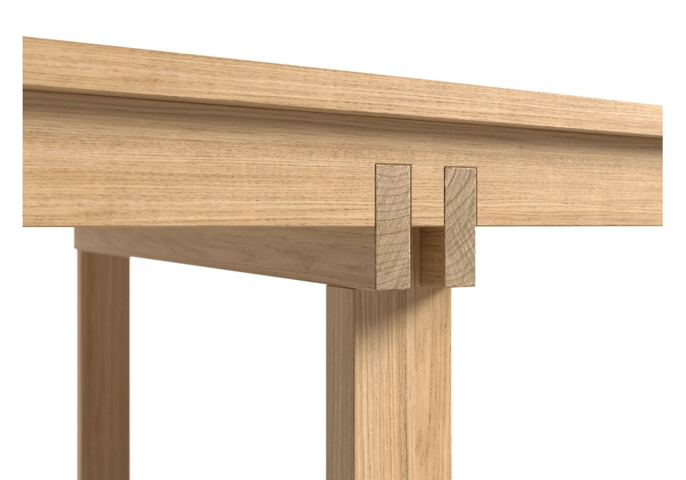 Mathare conçue par Hsiang Han Hsu pour Cappellini est une table réalisée en panneaux de conglomérat de bois de densité moyenne, plaqués chêne. Le piètement et les montants latéraux sous le plateau sont en chêne massif.