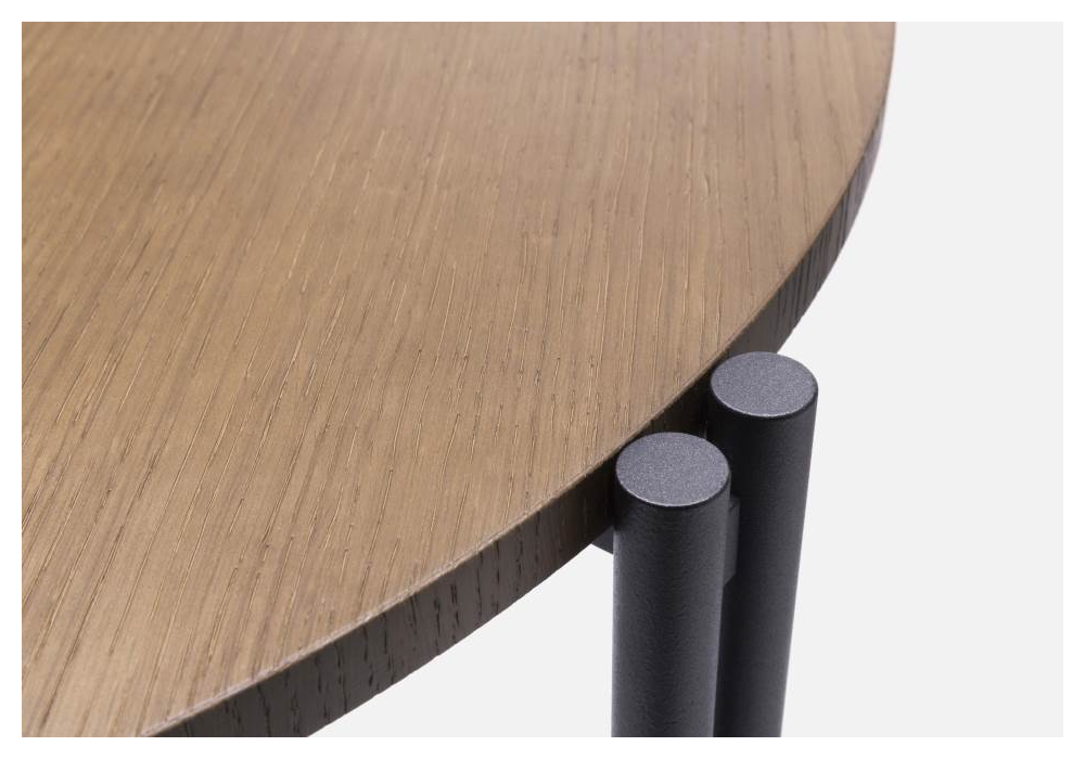 Etoile conçue par Piero Lissoni pour Living Divani est une table de bar avec une structure en métal peint et un plateau en essence de bois, en placage de bois multilaminé (chêne pierre ou gris rayé), en marbre ou en granit noir Zimbabwe ou Noai®.