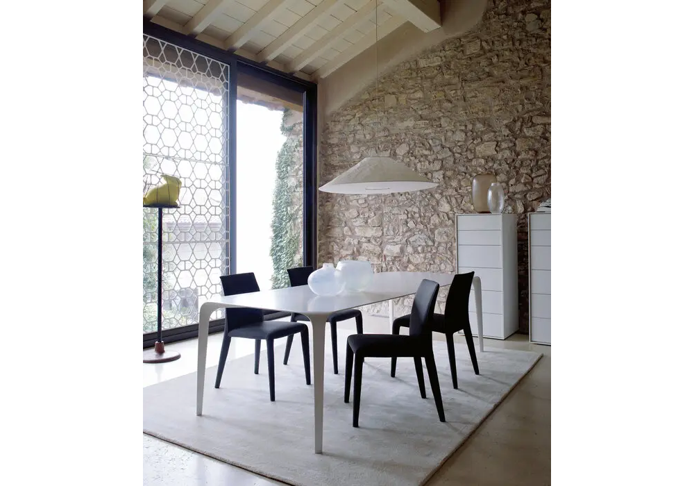 Link conçue par Jakob Wagner pour B&B Italia est une table composée d'un plateau et de pieds en Cristalplant Outdoor® blanc. Disponible en deux dimensions.