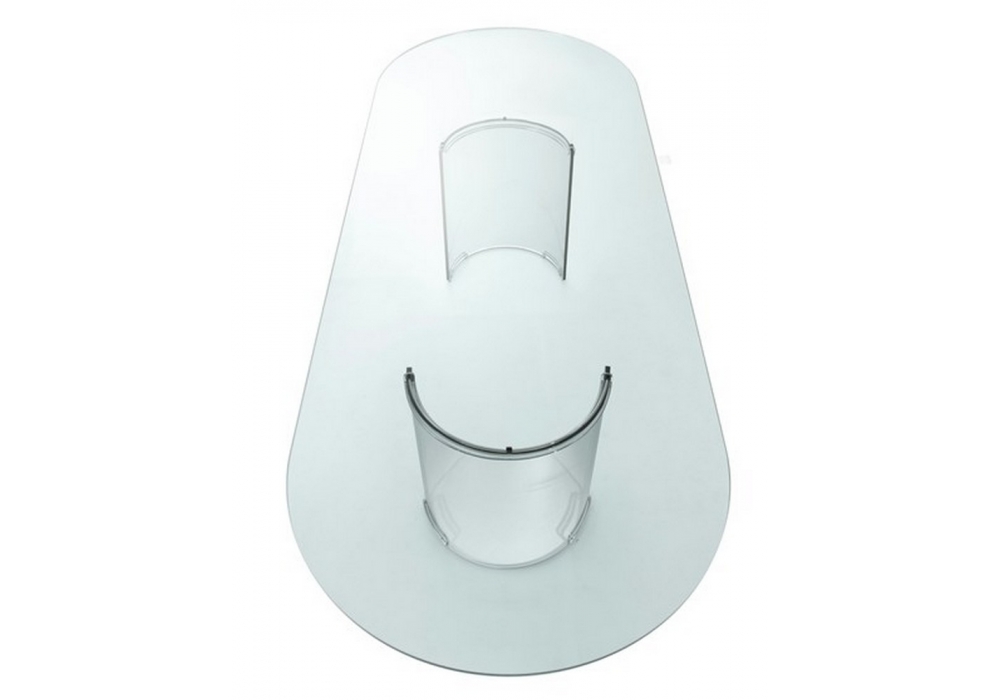 Adam by Gallotti&Radice est une table ovale en verre transparent. Bases en verre épaisseur 15mm courbé par le feu et anglés à la main. Agrafes en laiton chromé. Disponible aussi sans parties métalliques (hauteur totale : 72 cm). Tailles personnalisées pour la partie supérieure sur demande. Pour plus de 260cm plateau en verre, quatre bases sont recommandés.