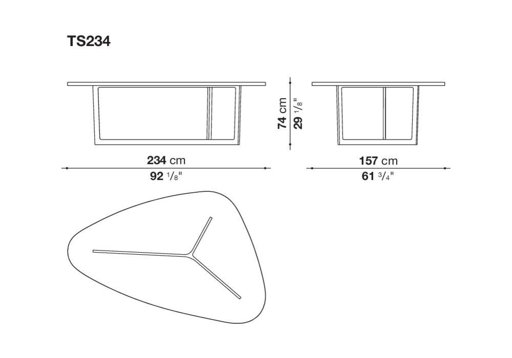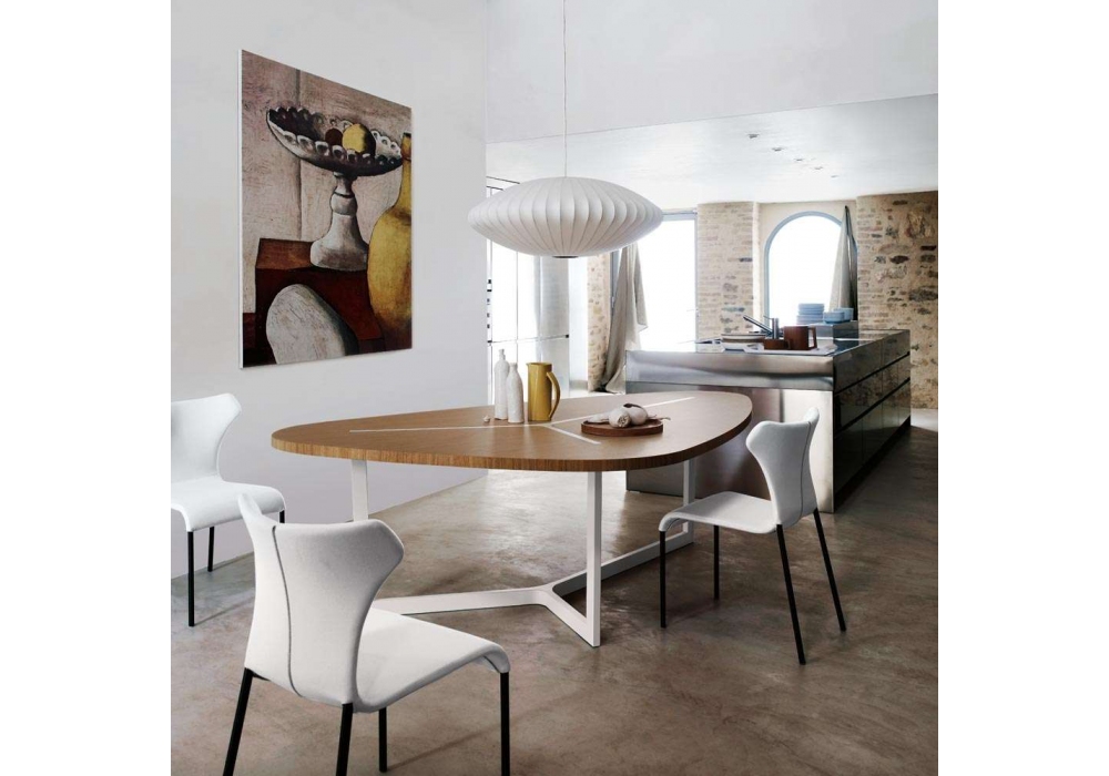 Seven conçue par Jean-Marie Massaud pour B&B Italia est une table avec une structure en acier peint et un plateau peint satiné ou plaqué : chêne gris, chêne clair brossé, chêne noir brossé ou chêne fumé.