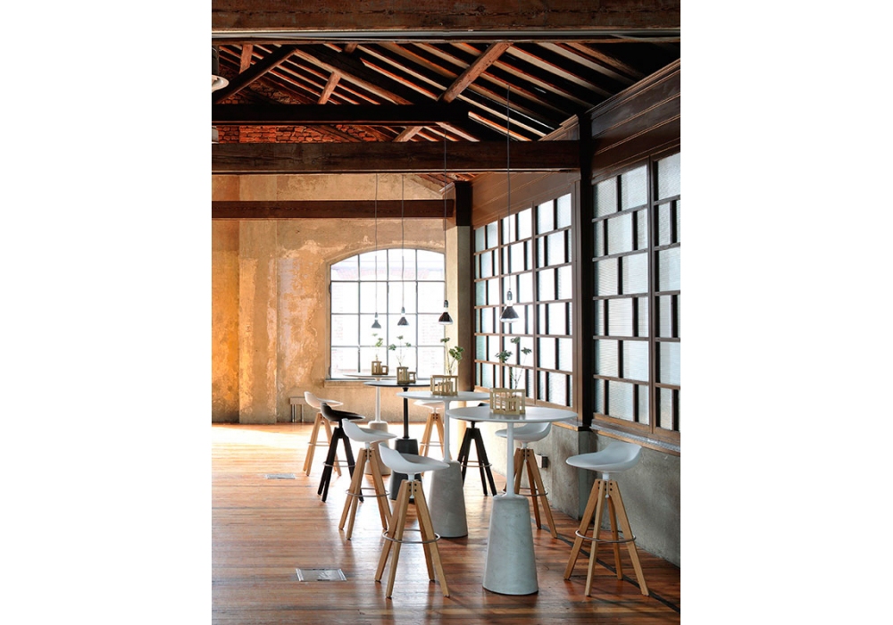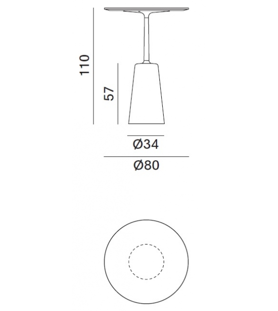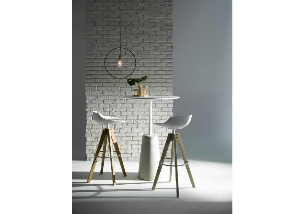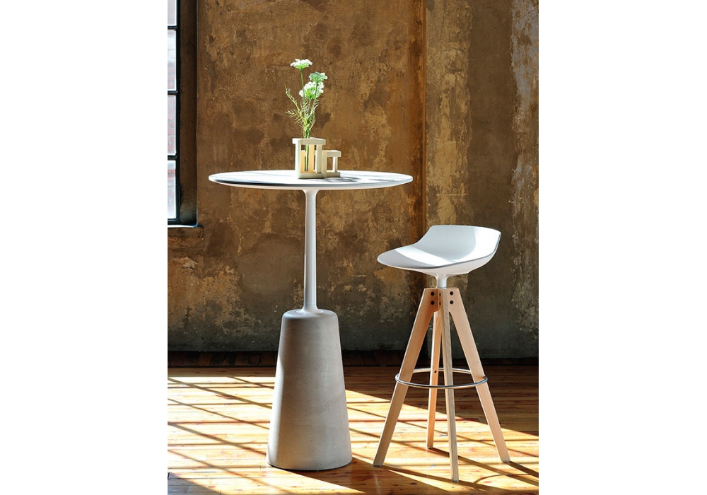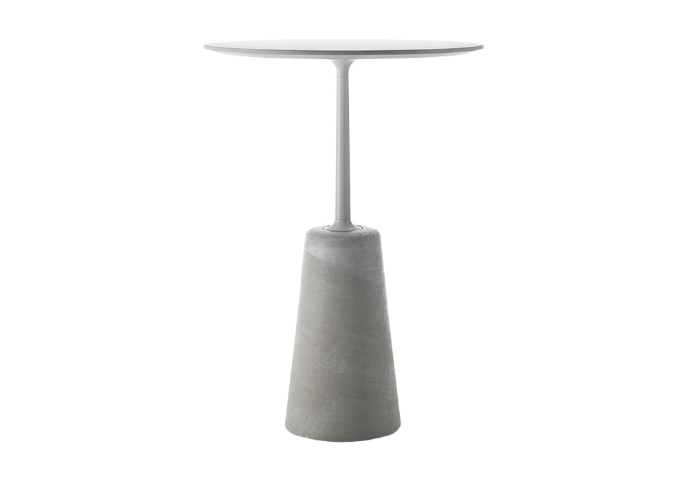 Rock Table conçue par Jean Marie Massaud pour MDF Italia est une table haute avec base en béton normal ou grenaillé, disponible en différentes couleurs. Le plateau est en combinaison monochromatique avec la finition de base.