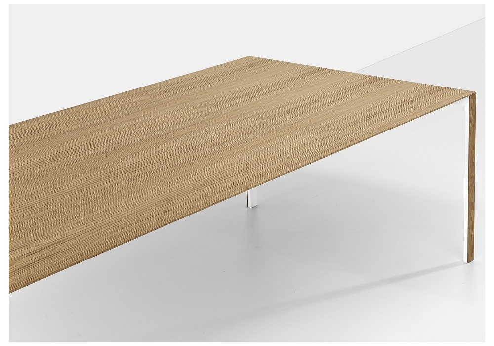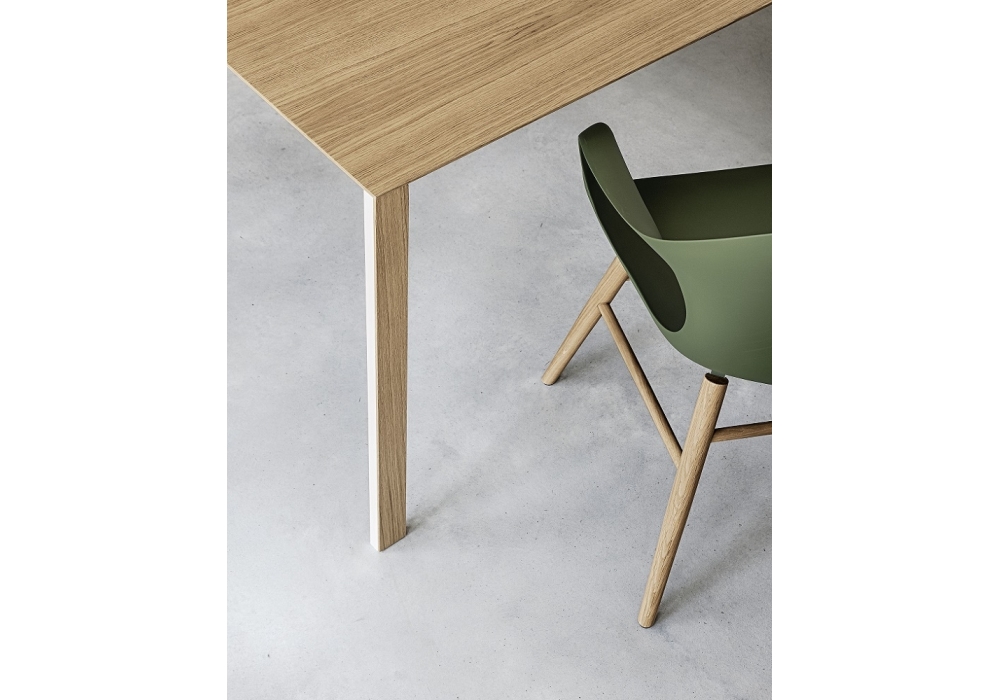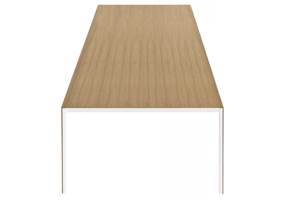 Thin-K conçue par Luciano Bertoncini pour Kristalia est une collection de tables proposée en version fixe ou extensible. Plateau et partie externe des pieds en bois, pieds en acier verni disponibles en plusieurs coloris.