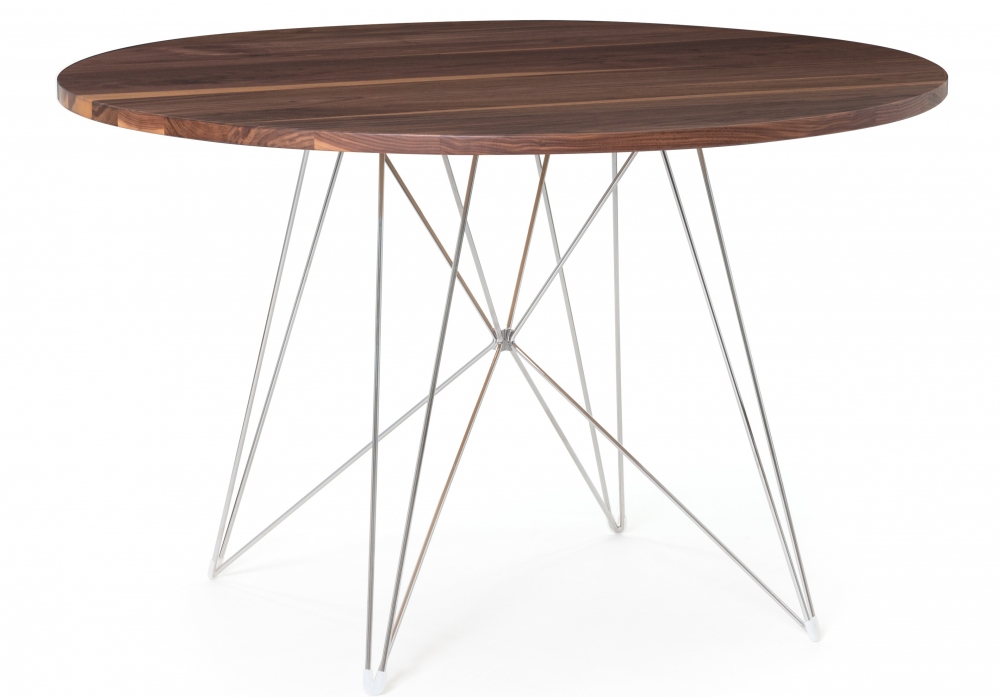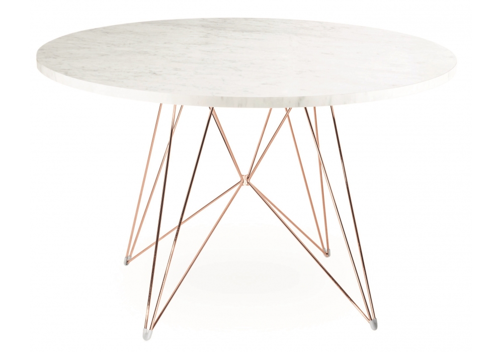 XZ3 conçue par Magis est une table de forme ronde avec structure en tige d'acier chromé, peint, doré ou cuivré. Plateau en marbre de Carrare, noyer massif ou MDF. Disponible en différentes finitions.