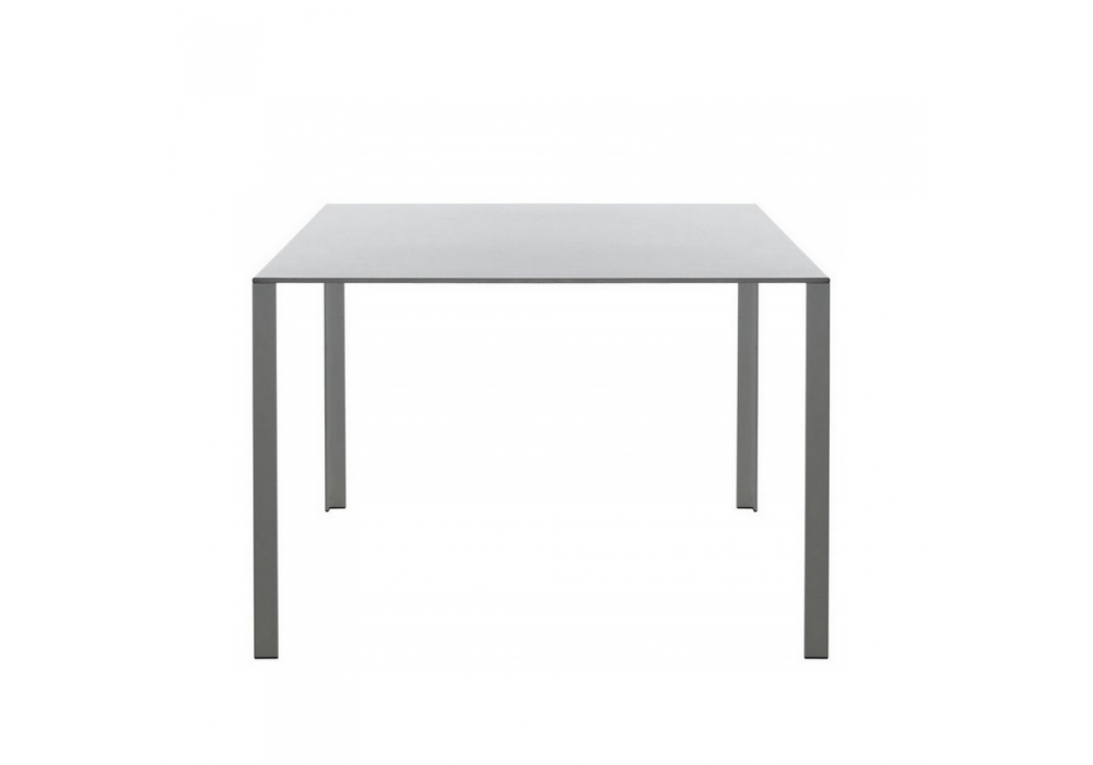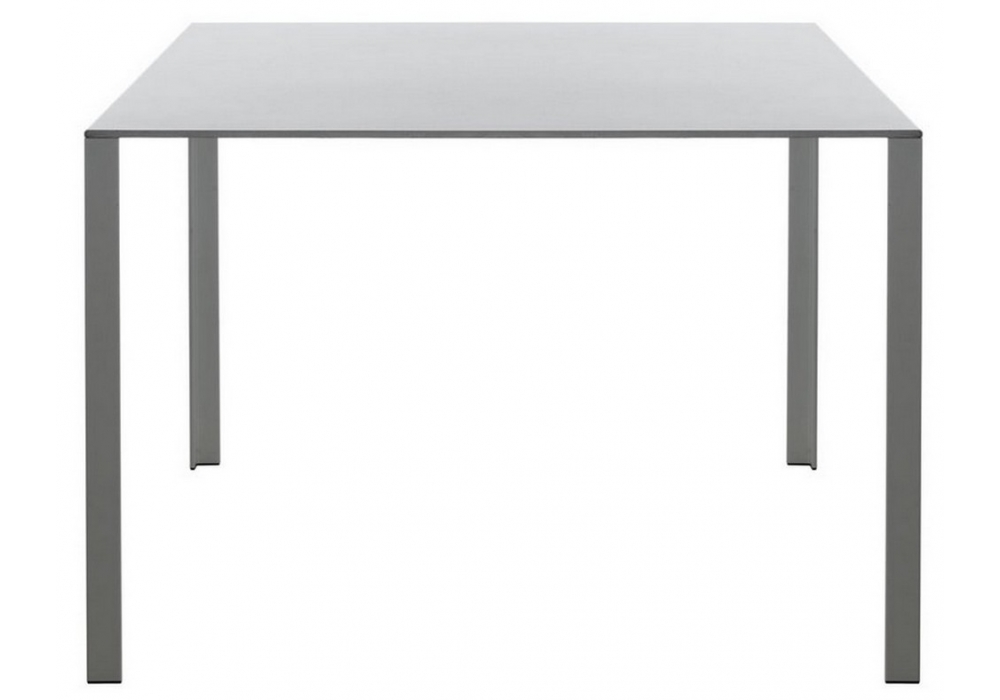 LessLess conçue par Jean Nouvel pour Molteni&C est une table carrée en aluminium. Les quatre pieds sont en forme de L, avec des ailes de 45 mm et une épaisseur de 8 mm. Le profil extérieur du plateau horizontal est très fin et la rigidité est obtenue en pliant la feuille d'aluminium selon des plans inclinés. Disponible en différentes finitions et dimensions.