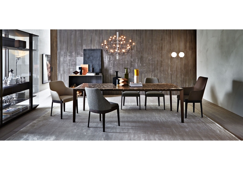 Filigree conçue par Rodolfo Dordoni pour Molteni&C est une table rectangulaire fixe réalisée avec structure en métal ou bois et plateau en verre, bois ou marbre. Disponible en différentes finitions et dimensions.