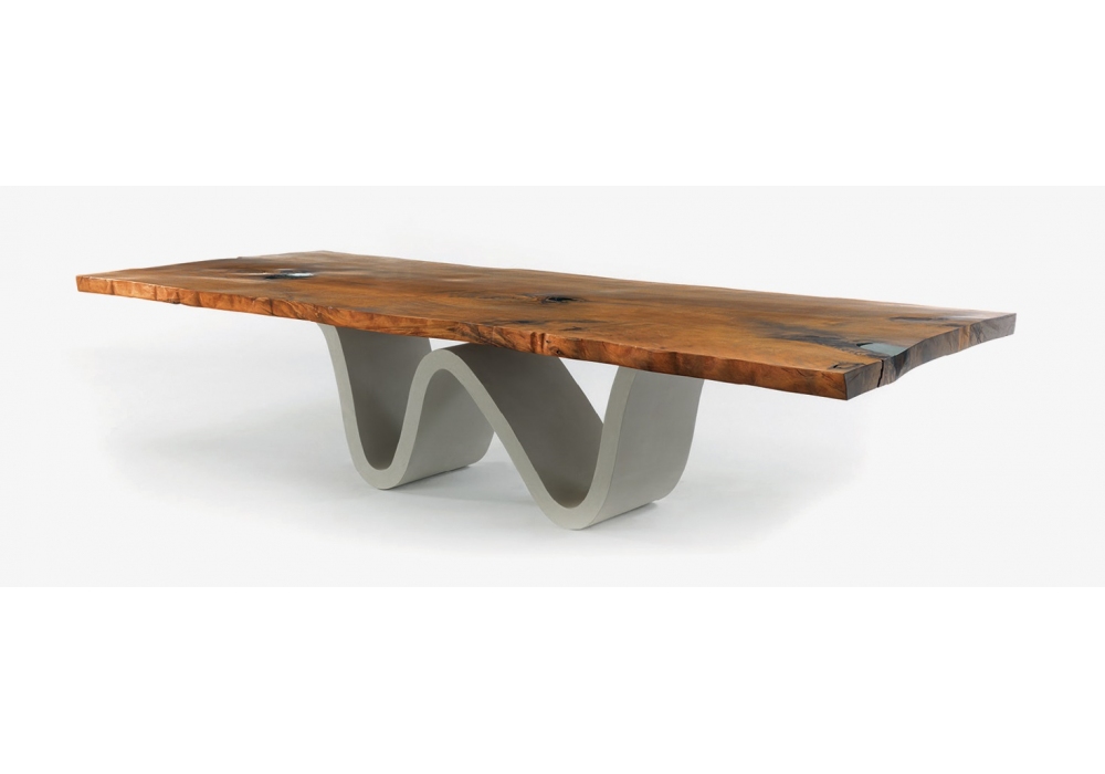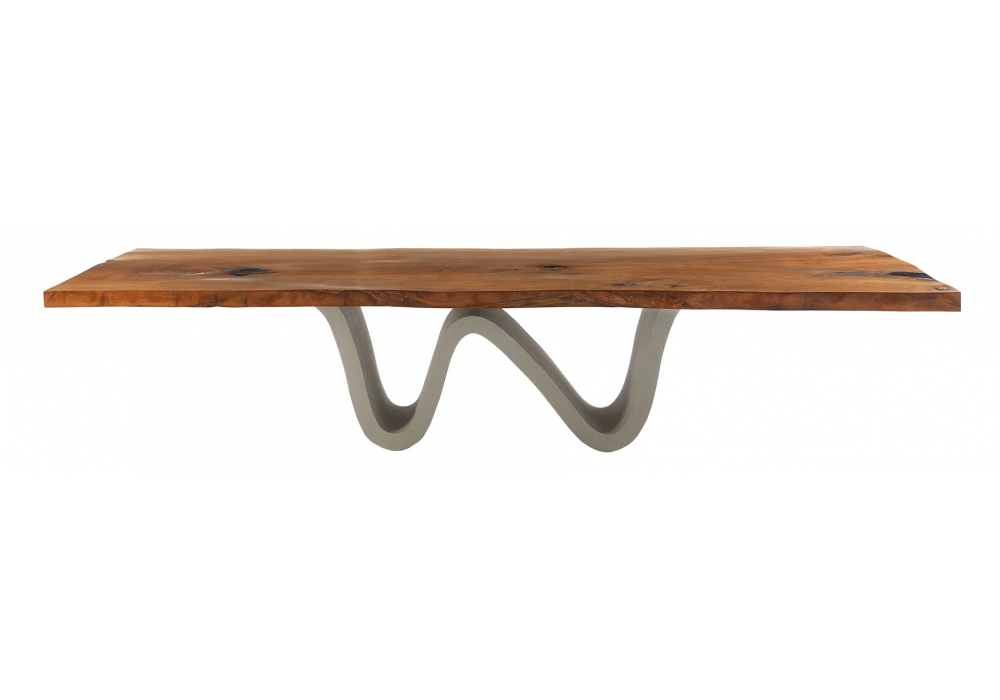 Kauri Bree e Onda conçue par Passon & Savorgnani pour Riva 1920 est une table réalisée avec un plateau en Kauri massif, combiné à un pied particulier avec une forme sinueuse qui rappelle les vagues de la mer.