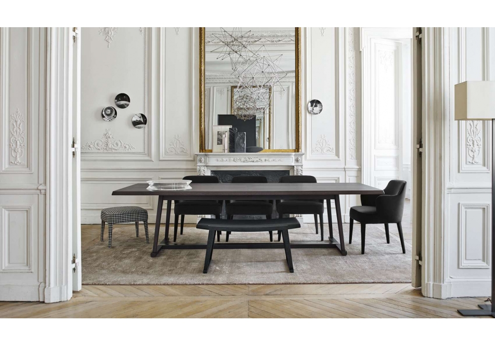 Recipio '14, conçue par Antonio Citterio pour Maxalto, est une table avec plateau en bois massif, panneau en contreplaqué alvéolé et particules de bois plaquées. Structure en bois massif : chêne gris, chêne clair brossé ou chêne noir brossé. Protection de la traverse en profil d'acier peint nickel bronzé.