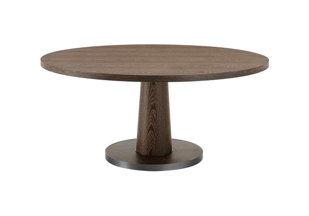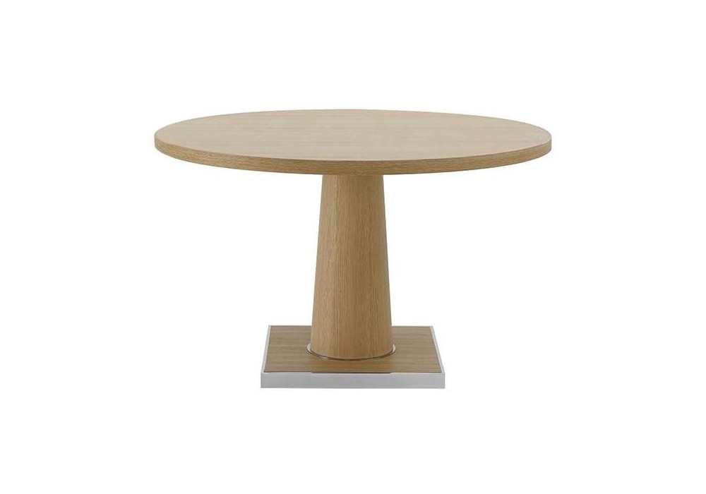 Convivio conçue par Antonio Citterio pour Maxalto est une table avec plateau rond en chêne ou wengé en différentes finitions. Base avec bord en acier chromé brillant ou nickel bronzé peint.