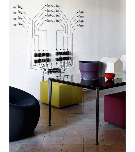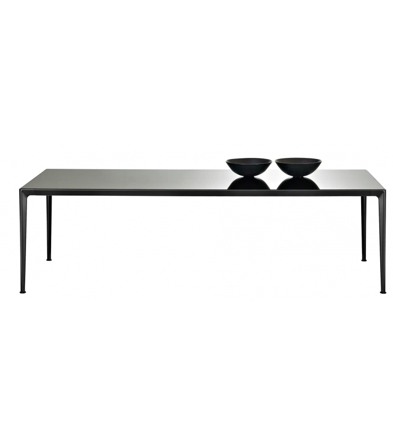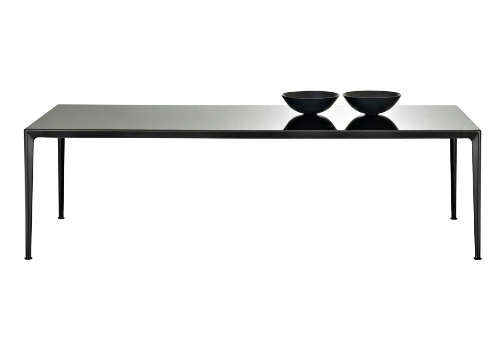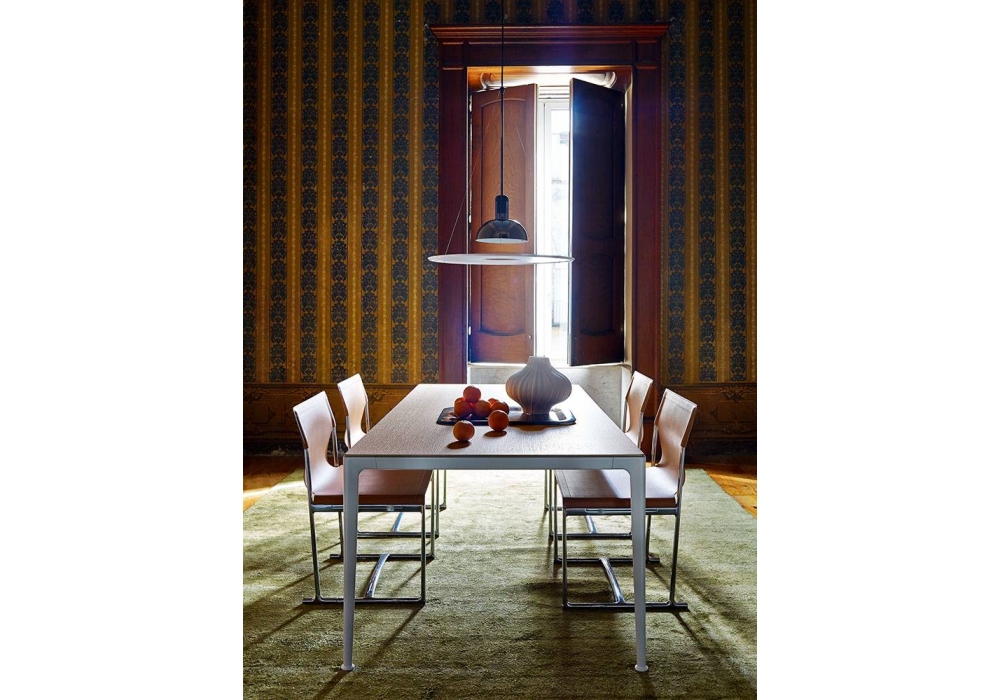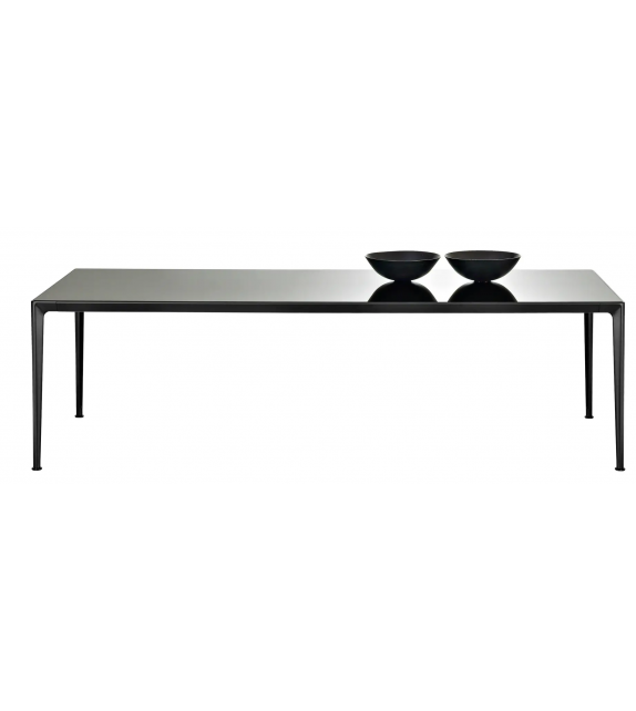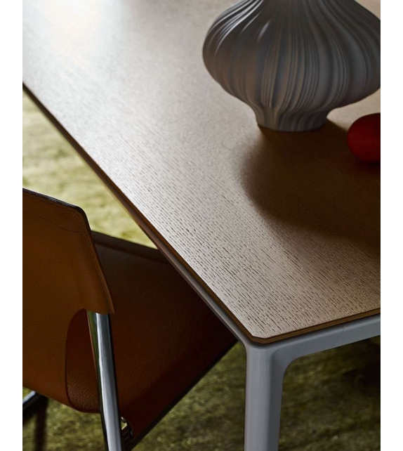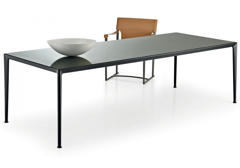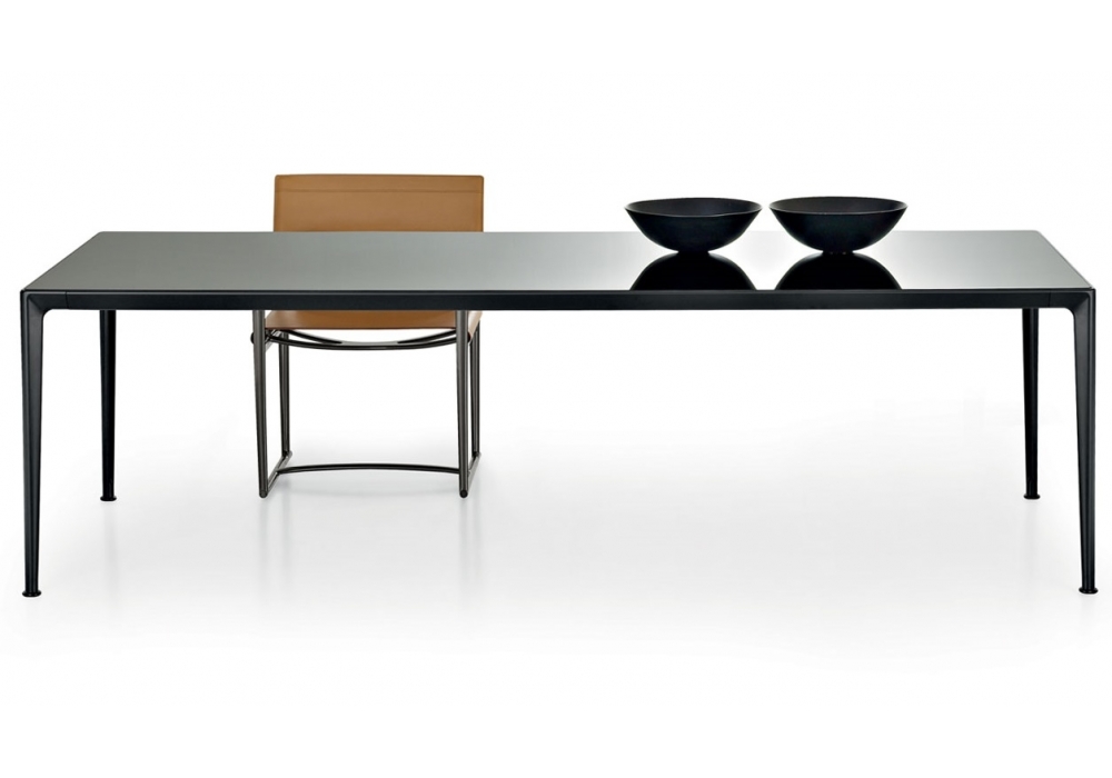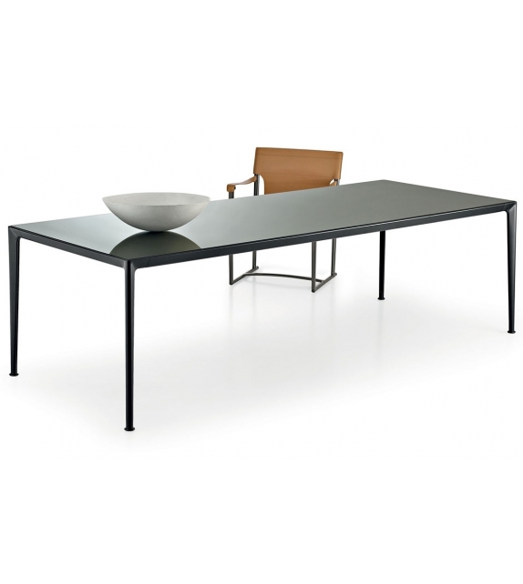 Mirto Indoor conçue par Antonio Citterio pour B&B Italia est une table avec structure en aluminium moulé sous pression et profilés en aluminium peint et plateau en panneau de fibres de bois MDF plaqué, verre ou marbre. Disponible en différentes dimensions.