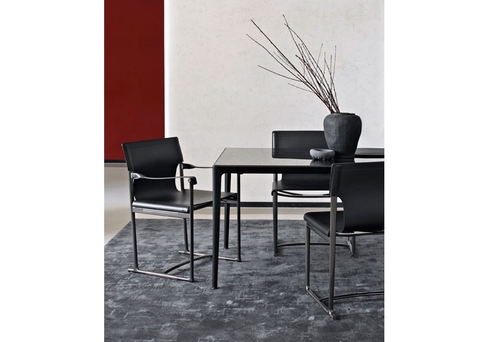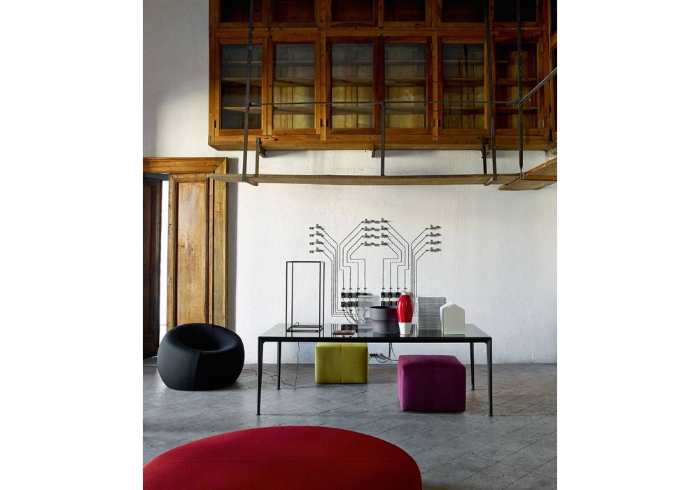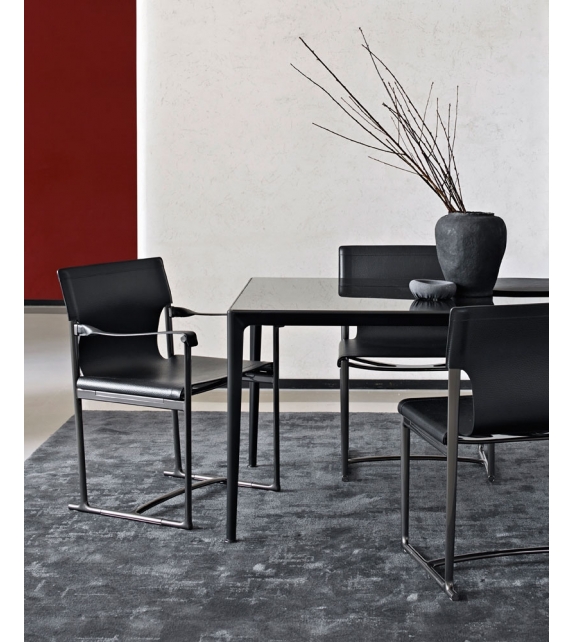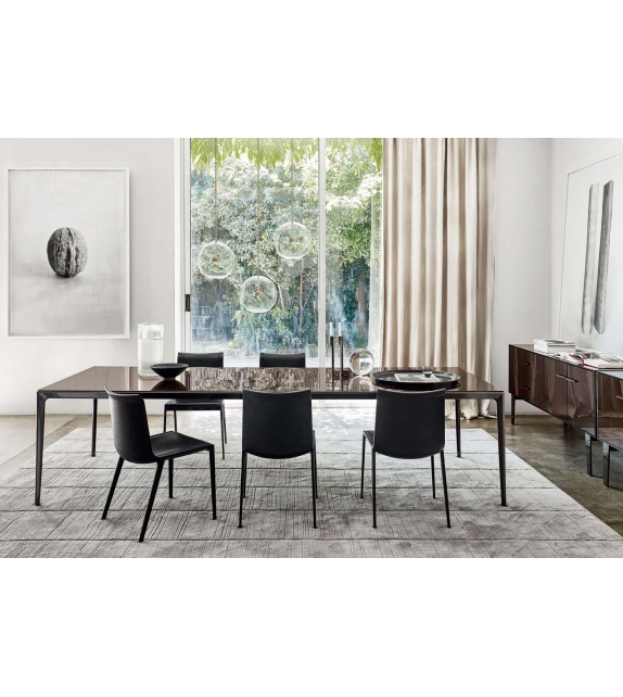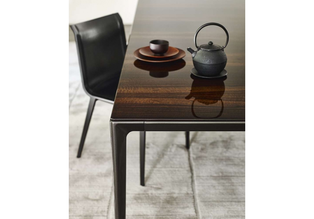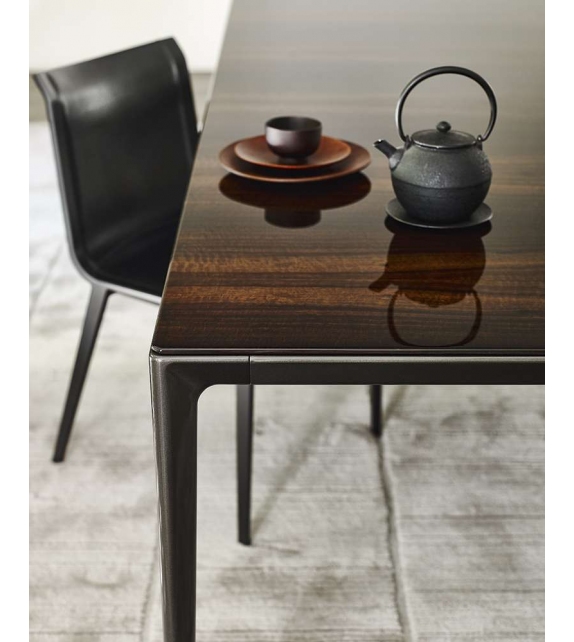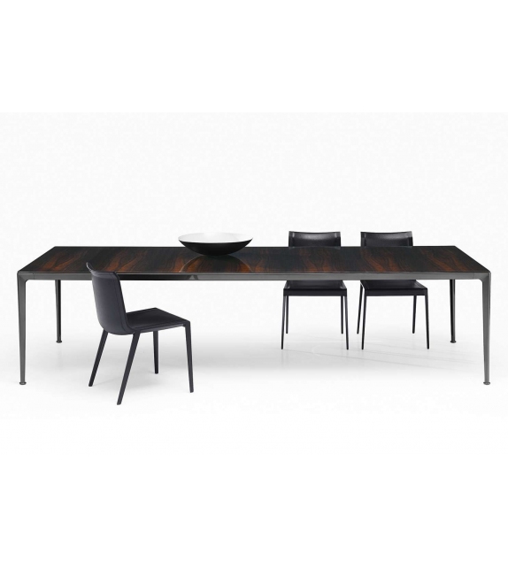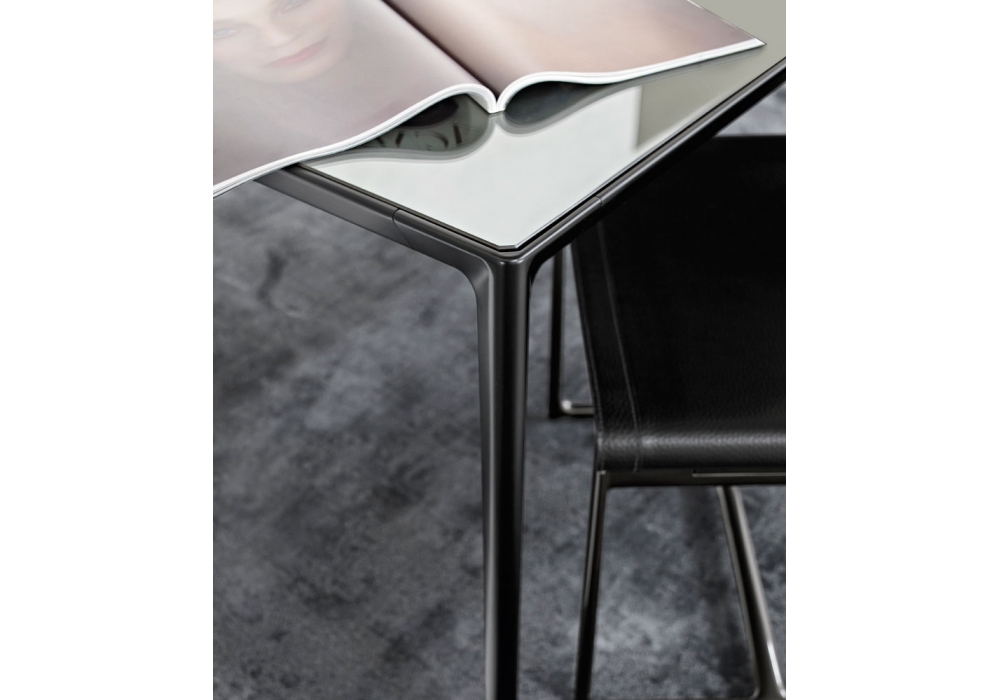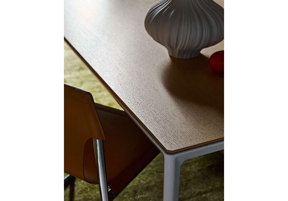 Mirto Indoor conçue par Antonio Citterio pour B&B Italia est une table avec structure en aluminium moulé sous pression et profilés en aluminium peint et plateau en panneau de fibres de bois MDF plaqué, verre ou marbre. Disponible en différentes dimensions.