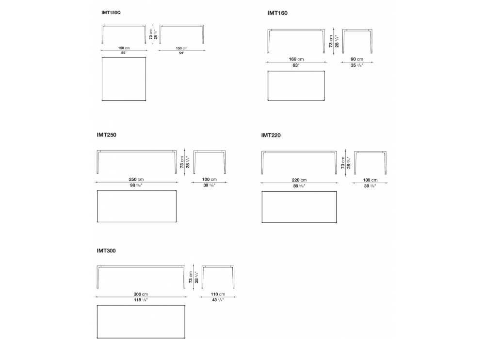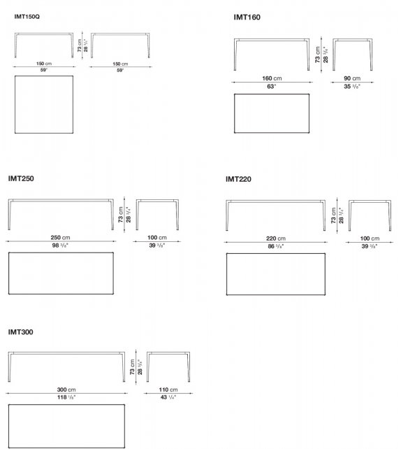 | Dimensions | 150 x 150 x H 73 cm; 160 x 90 x H 73 cm; 220 x 100 x H 73 cm; 250 x 100 x H 73 cm; 300 x 110 x H 73 cm. |